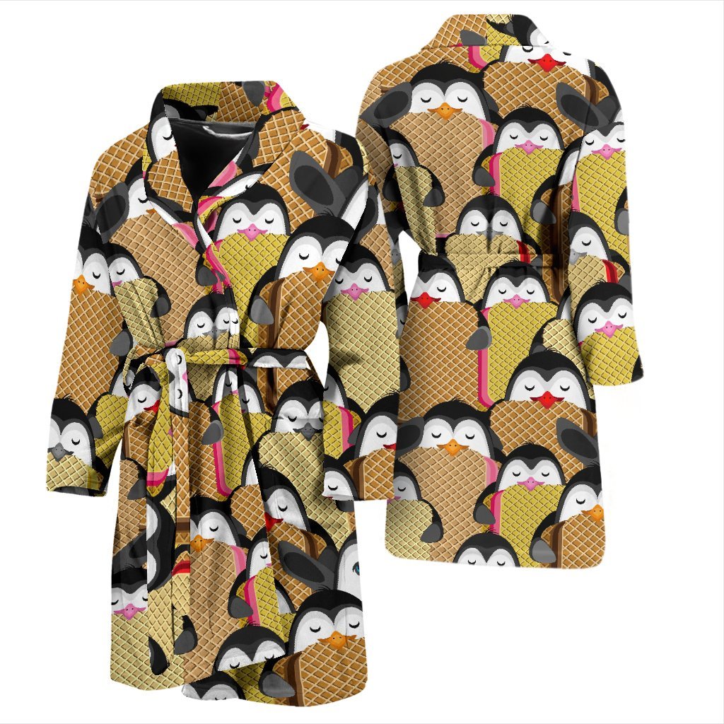 Penguin Waffle Pattern Print Men Long Robe