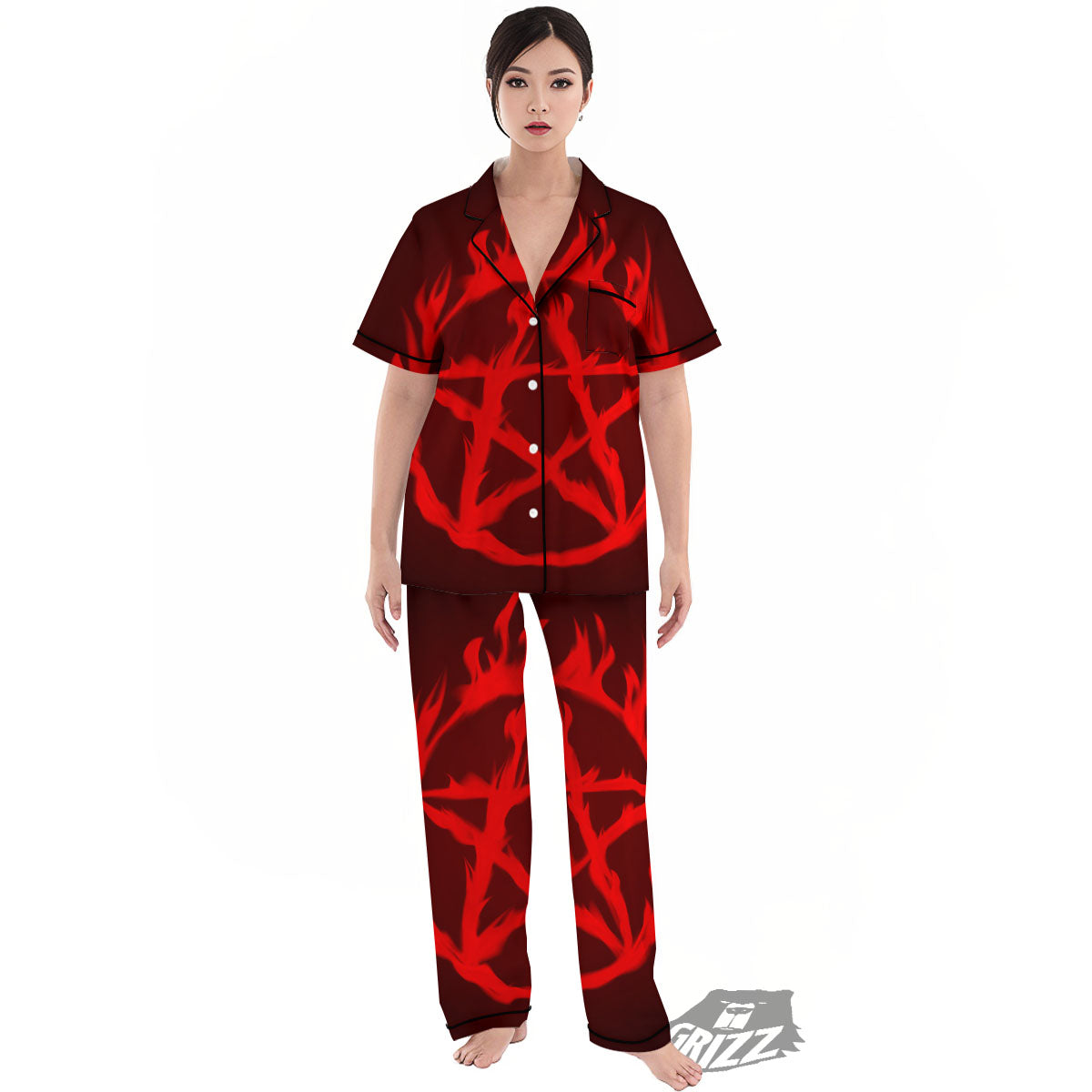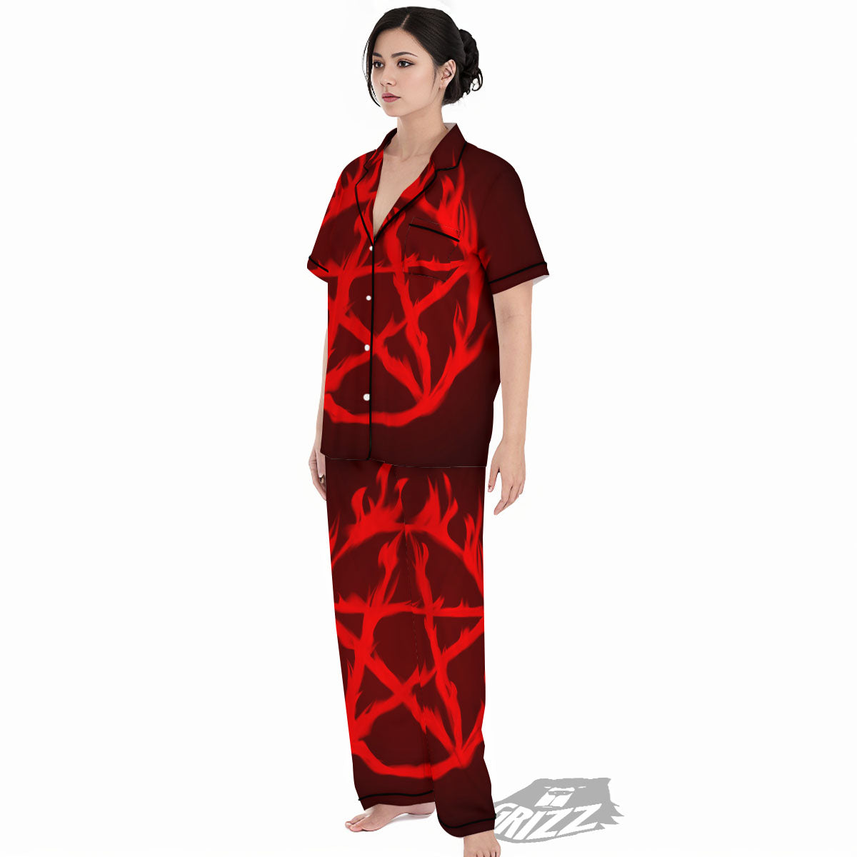 Pentagram Fiery Reversed Print Women's Pajamas Set