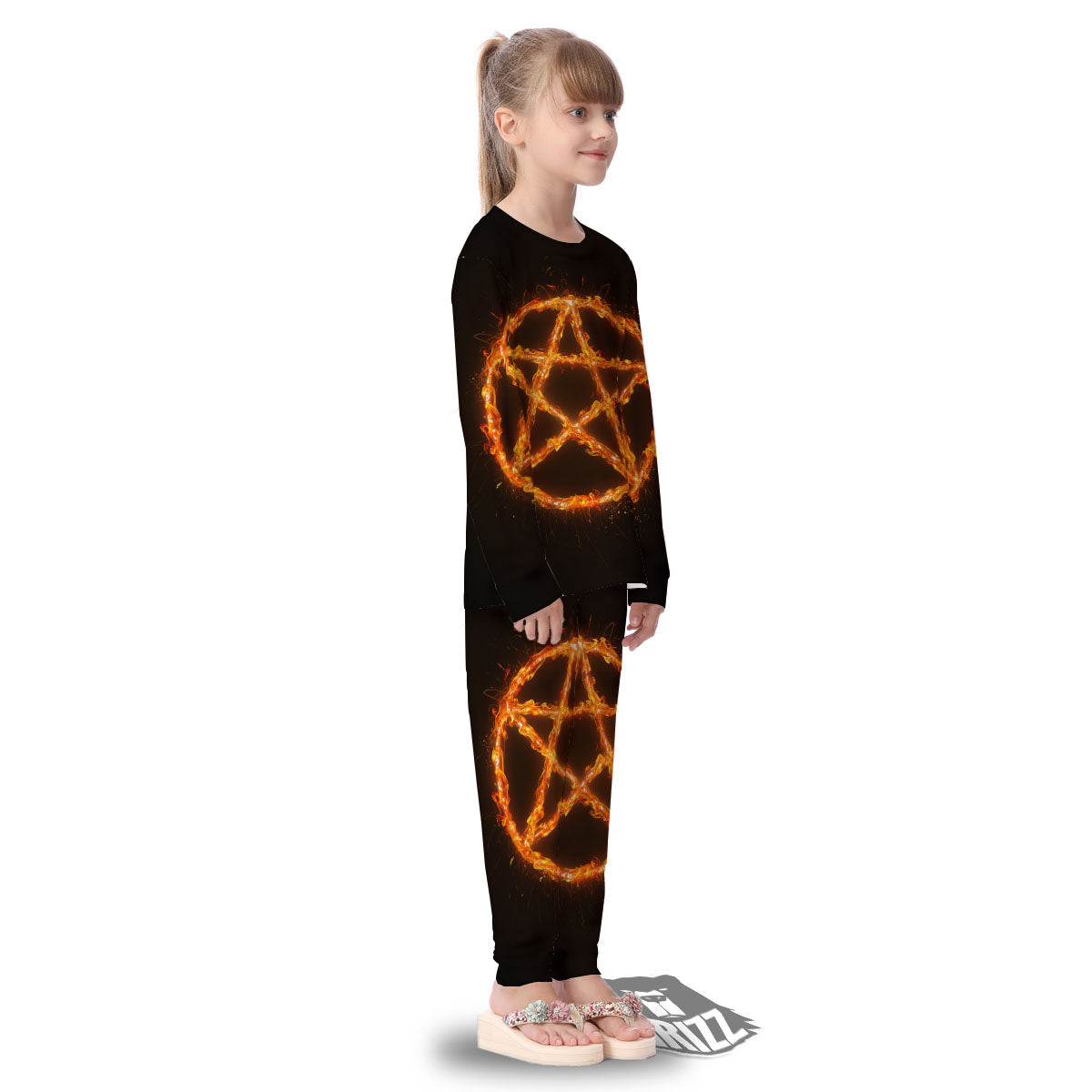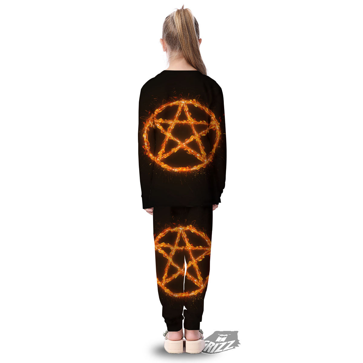Pentagram Symbol Flaming Print Kid's Pajamas