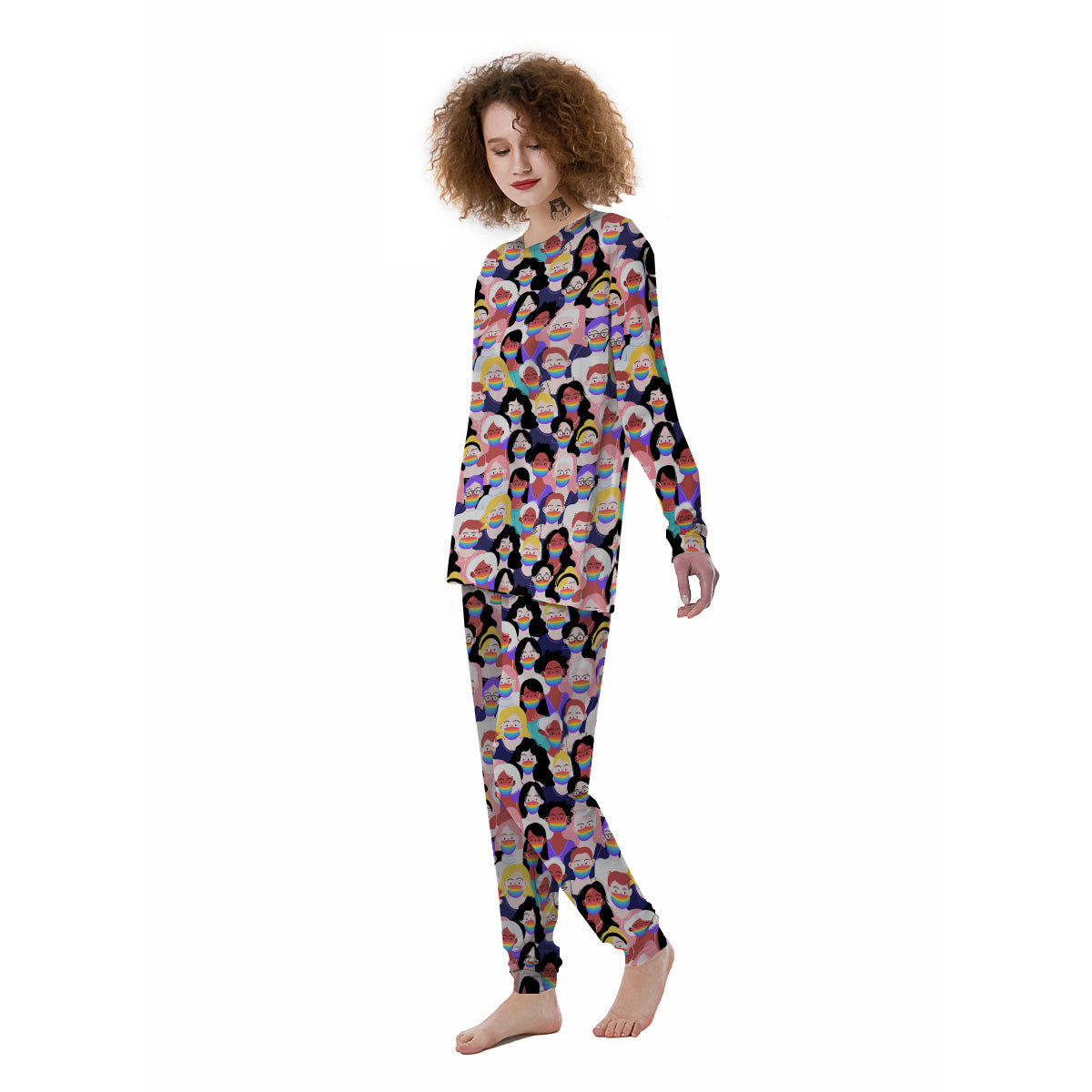 People And Rainbow Face Masks Print Pattern Women's Pajamas