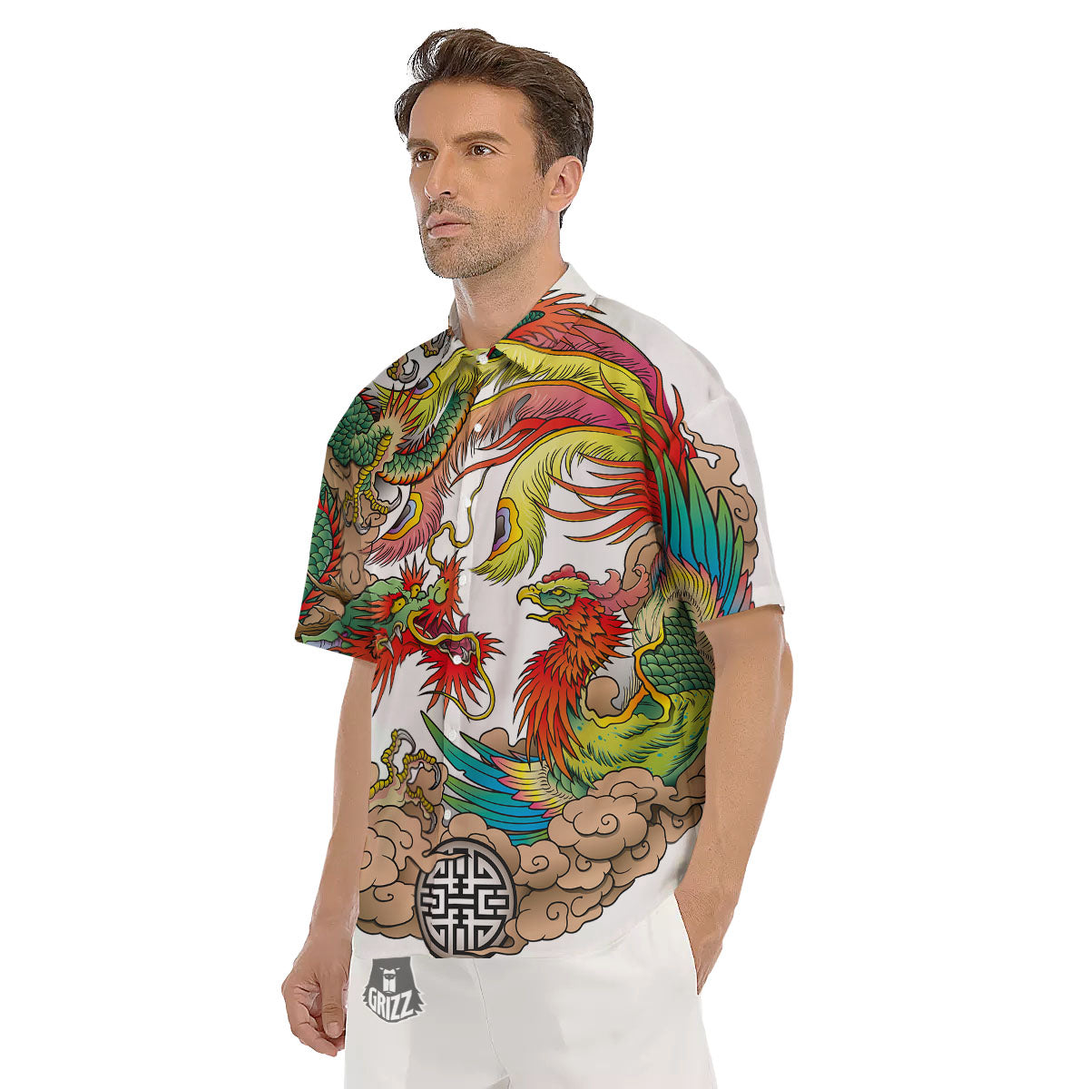 Phoenix And Dragon Japanese Tattoo Print Men's Short Sleeve Shirts