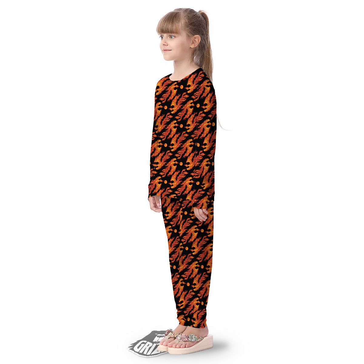 Phoenix Fire On Black Print Pattern Kid's Pajamas