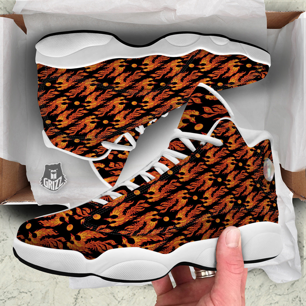 Phoenix Fire On Black Print Pattern White Basketball Shoes