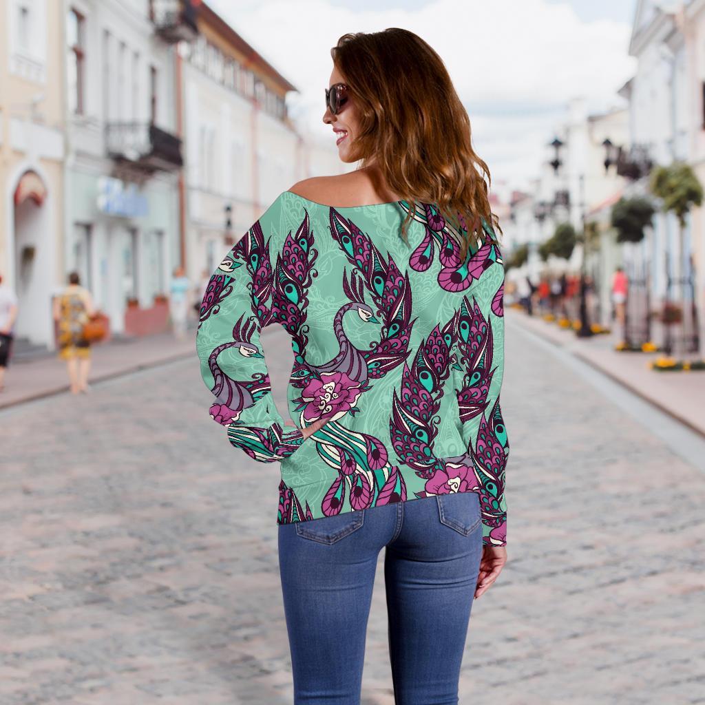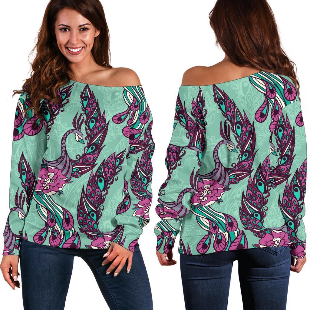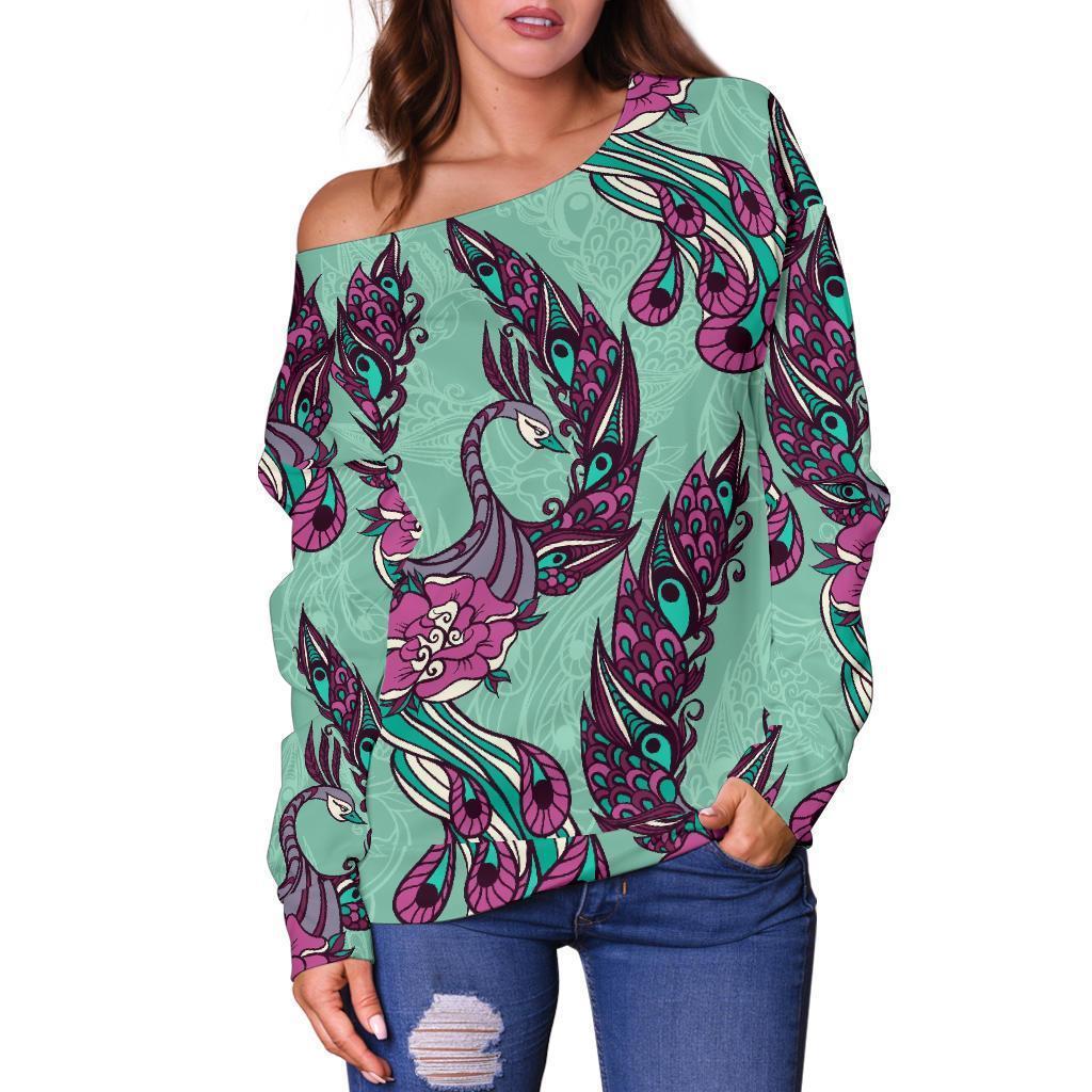 Phoenix Floral Print Pattern Women Off Shoulder Sweatshirt