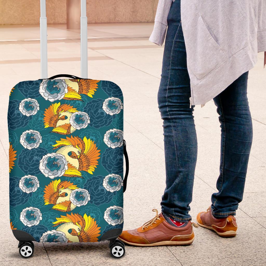 Phoenix Pattern Print Floral Luggage Cover Protector