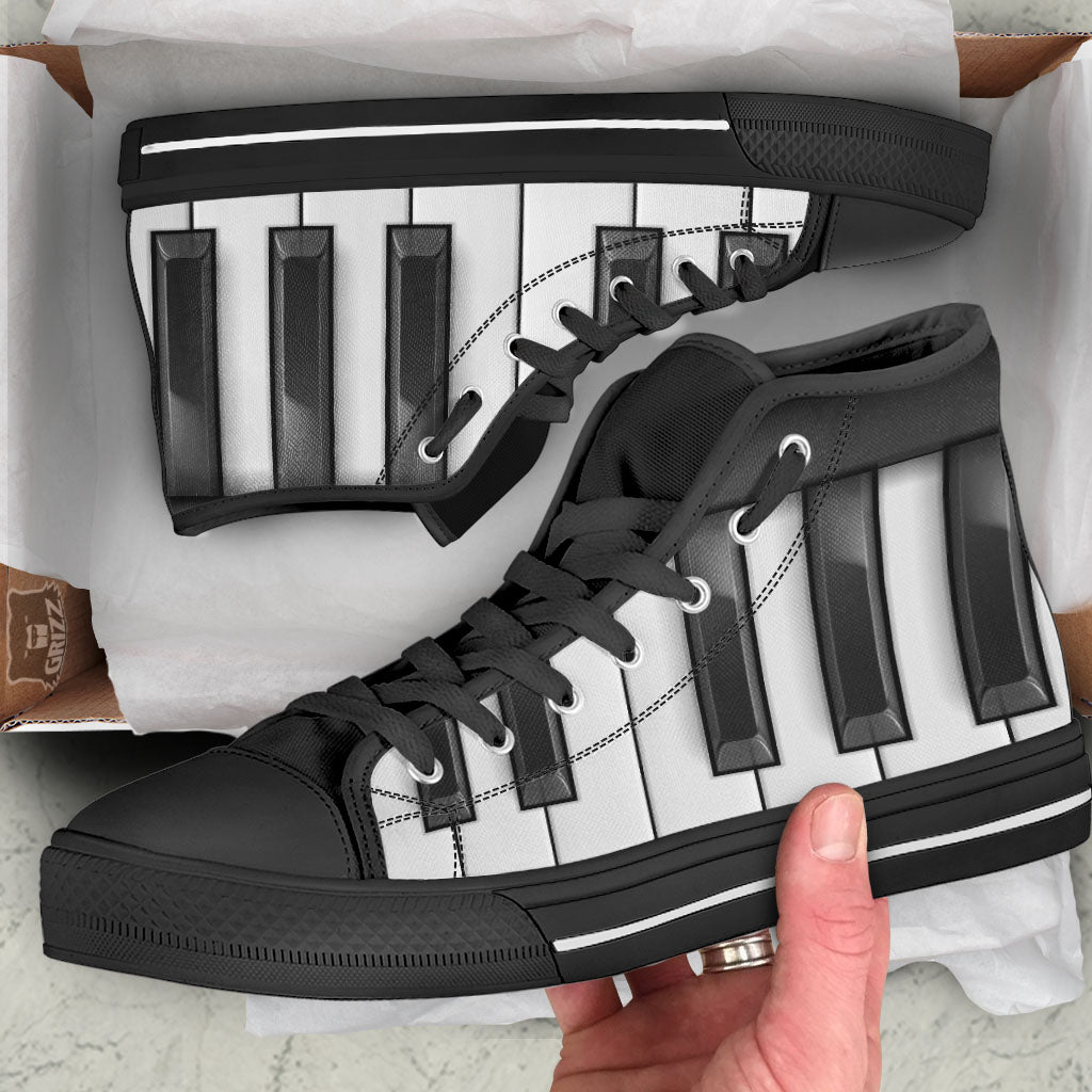 Piano Keyboard Print High Top Shoes