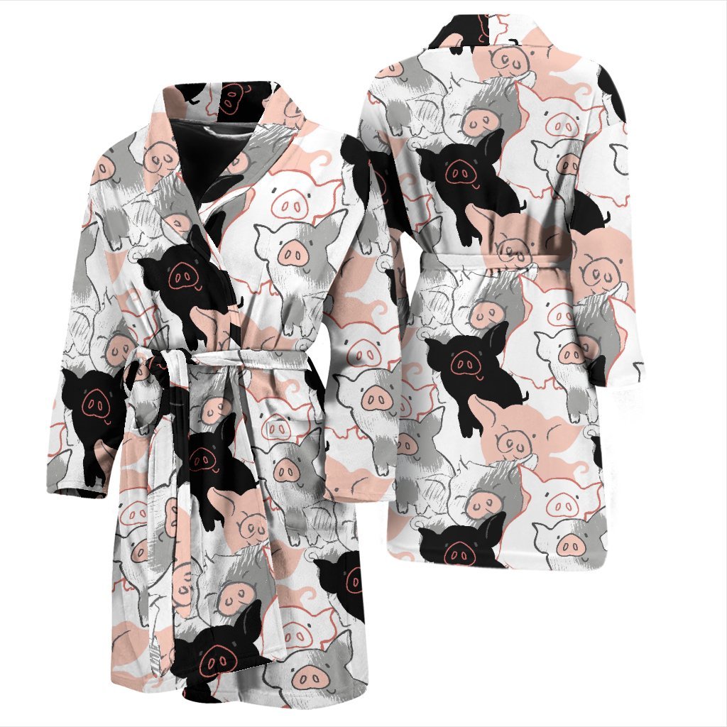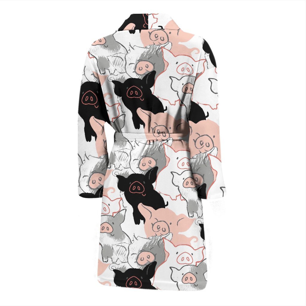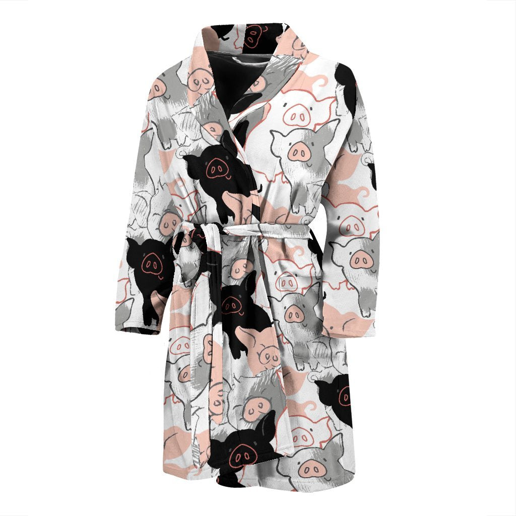 Pig Hand Drawn Pattern Print Men Long Robe