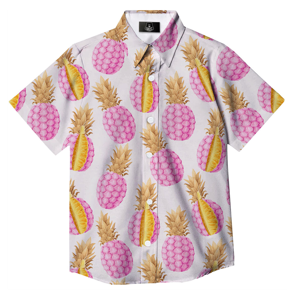 Pineapple Pink Vintage Print Pattern Button Up Shirt