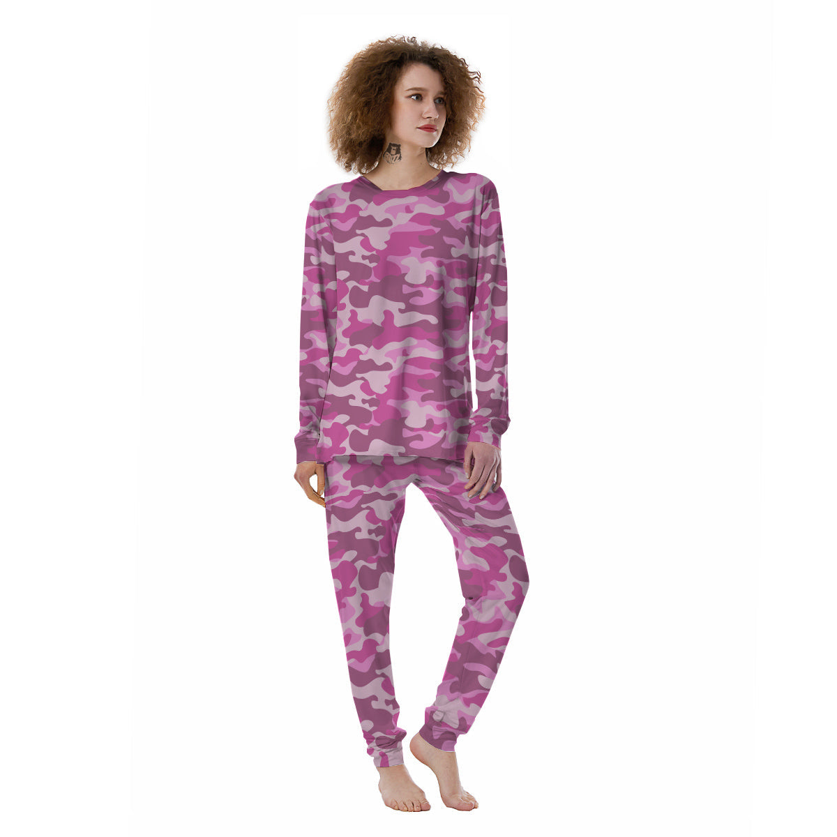 Pink Camo And Camouflage Print Women's Pajamas