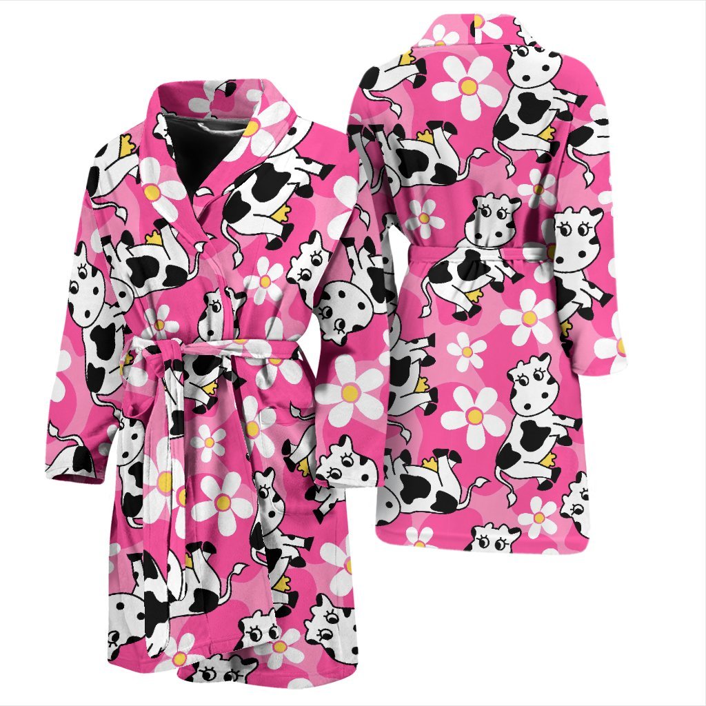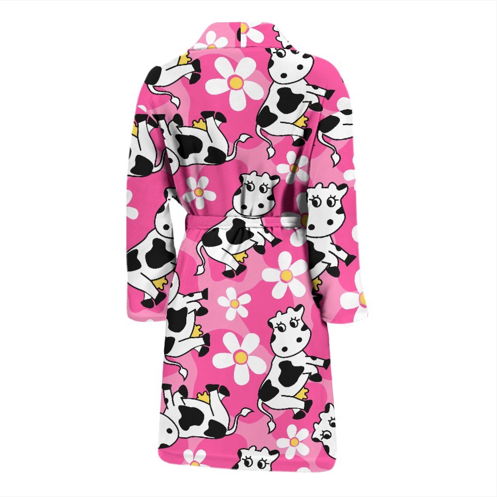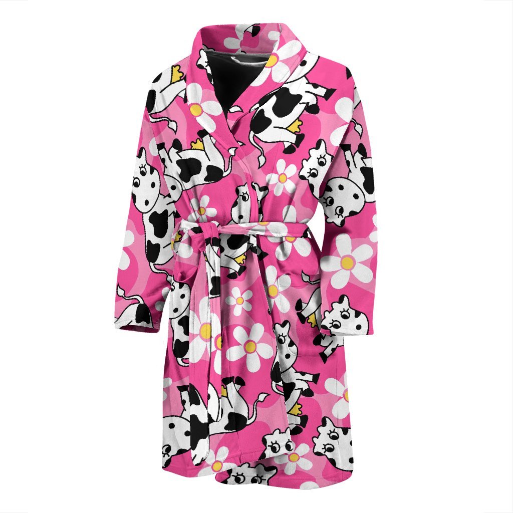 Pink Cartoon Cow Pattern Print Men Long Robe