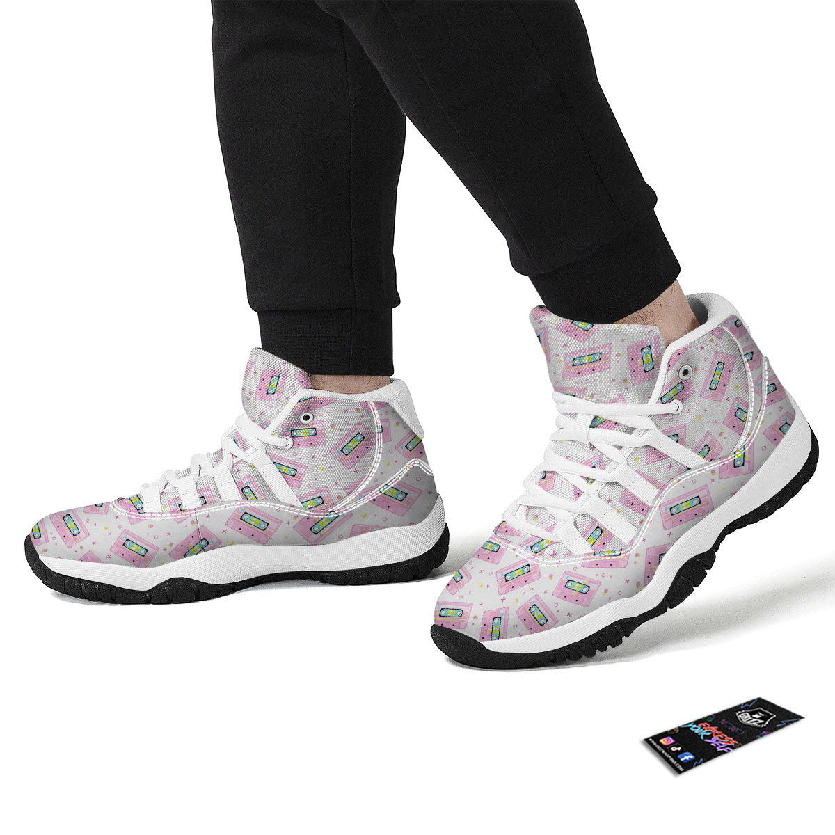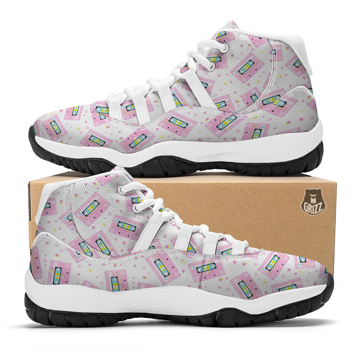 Pink Cassette Tape White Print Pattern White Bball Shoes
