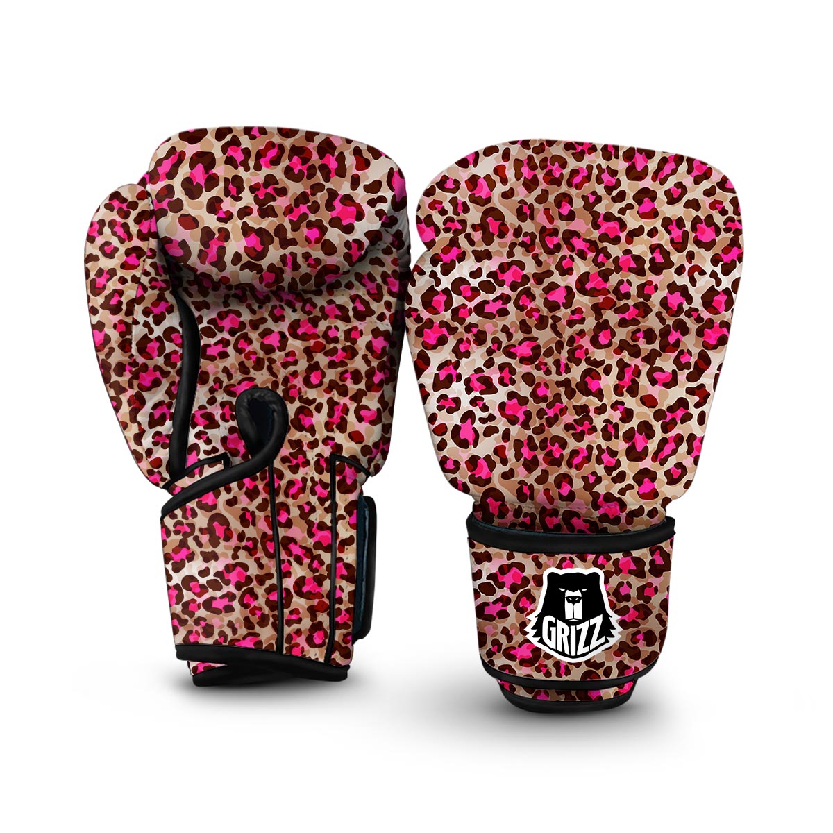 Pink Dot Cheetah Leopard Pattern Print Boxing Gloves
