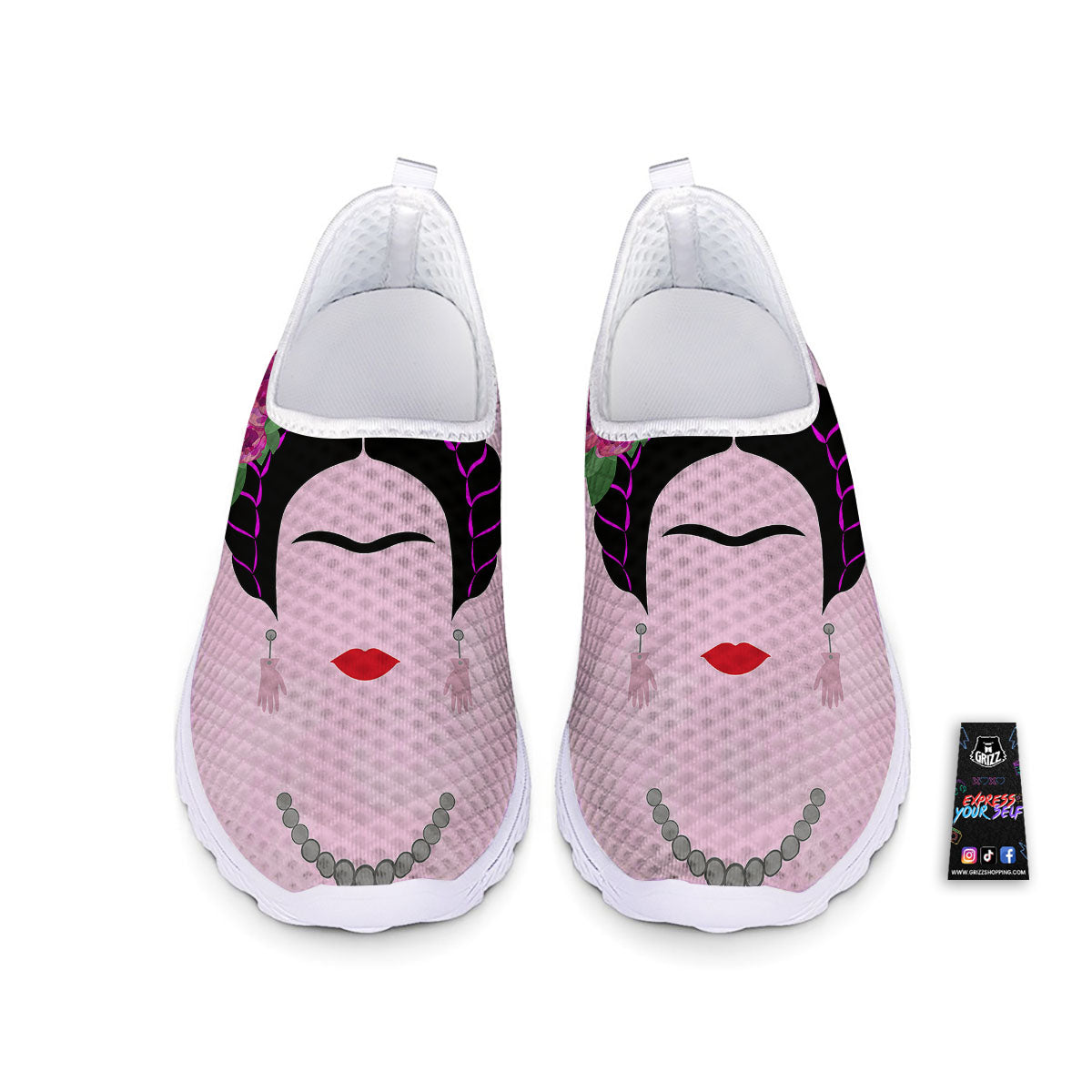 Pink Flower And Frida Kahlo Print Nurse Shoes