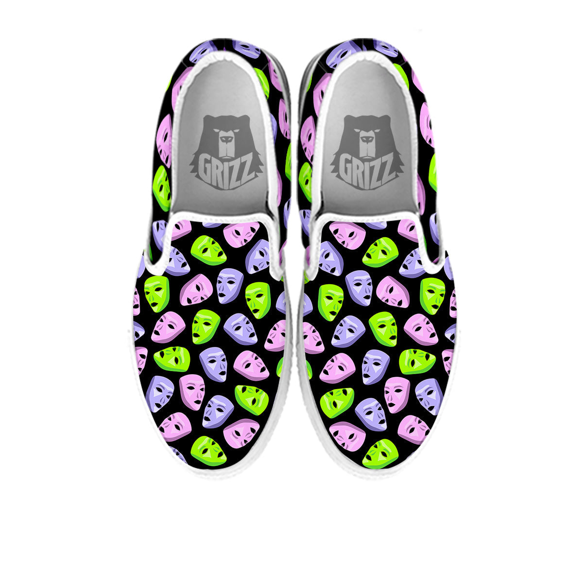 Looking for a unique Slip On Sneakers? Check out our Pink Green And Purple Theater Masks Print Pattern White Slip On Shoes at Grizzshopping. Our Slip On Sneakers are handcrafted to the highest quality standards that custom made for you