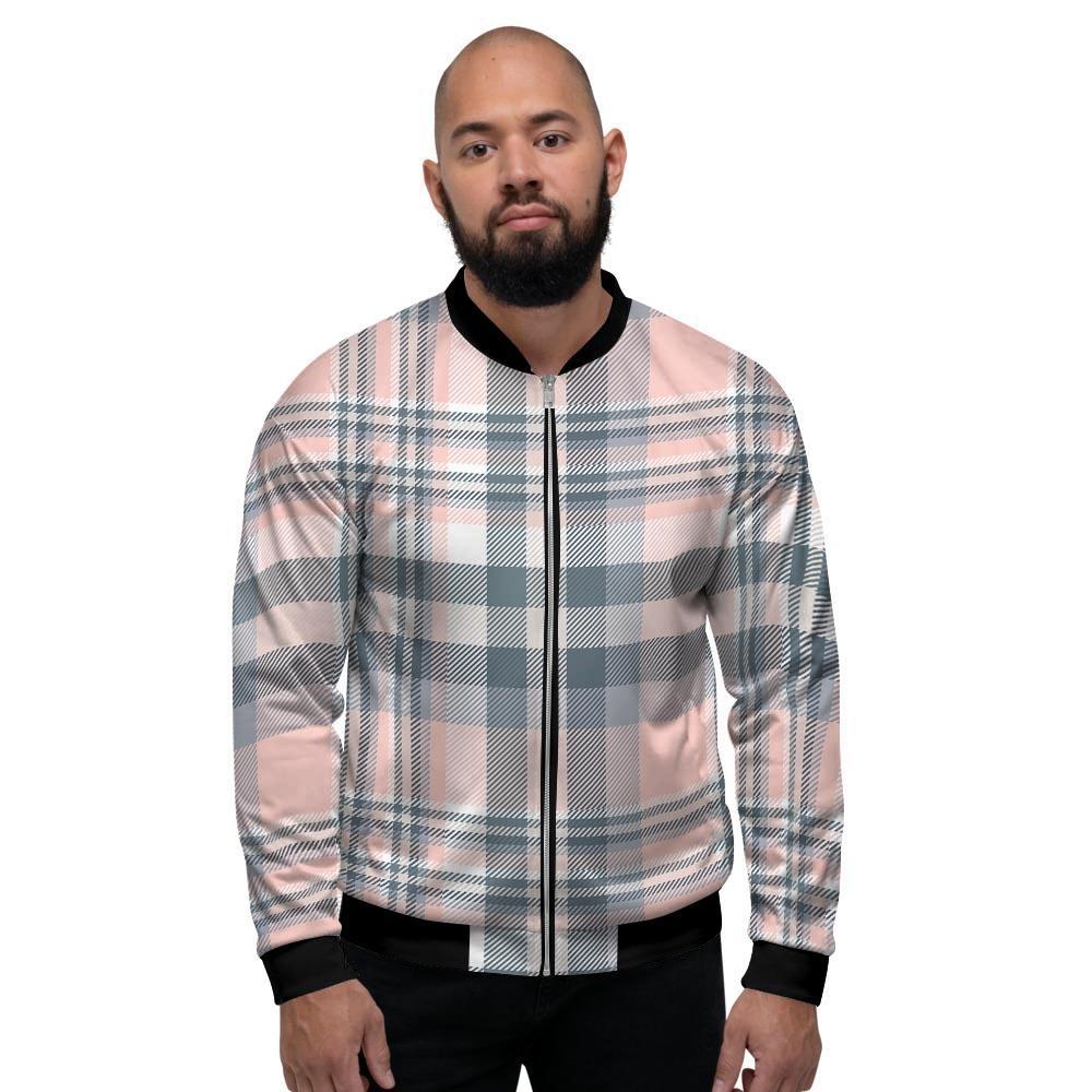 Pink Grey Plaid Tartan Men's Bomber Jacket