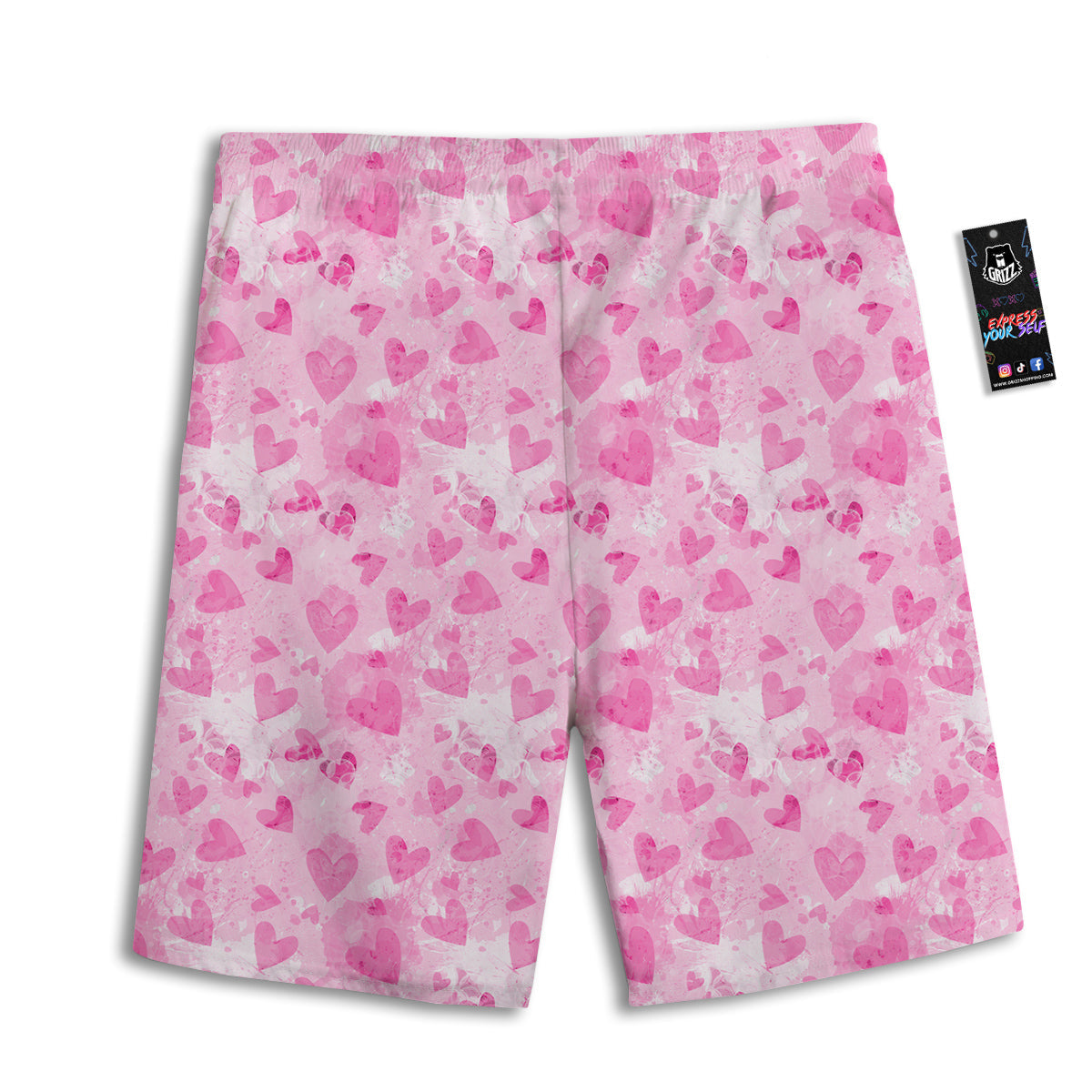 Pink Heart Cute Print Pattern Men's Athletic Shorts