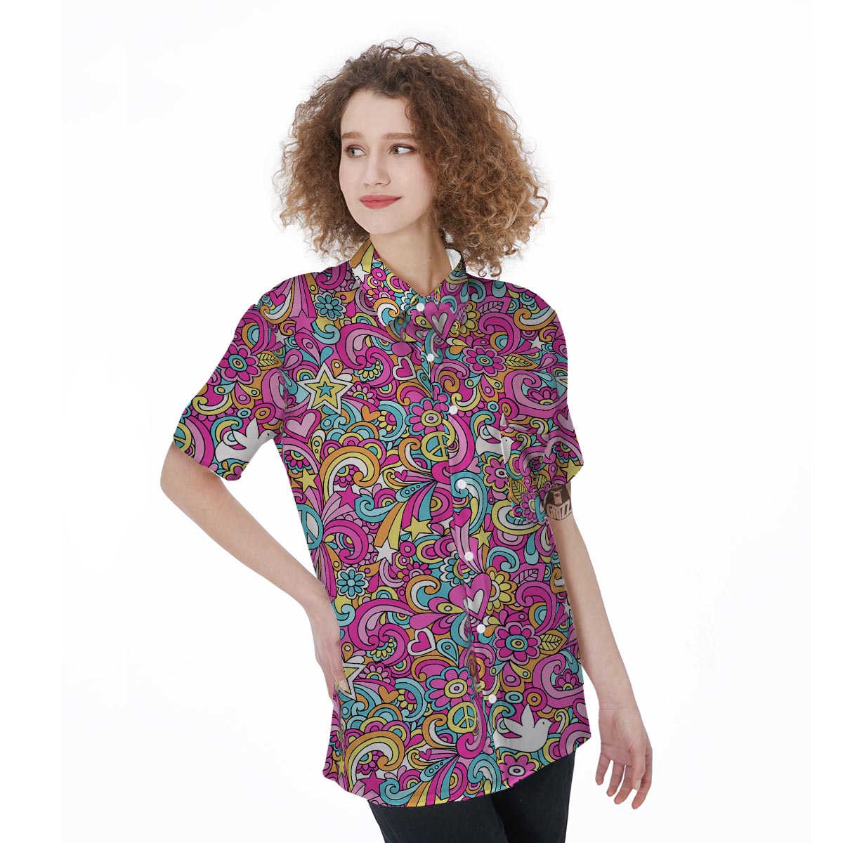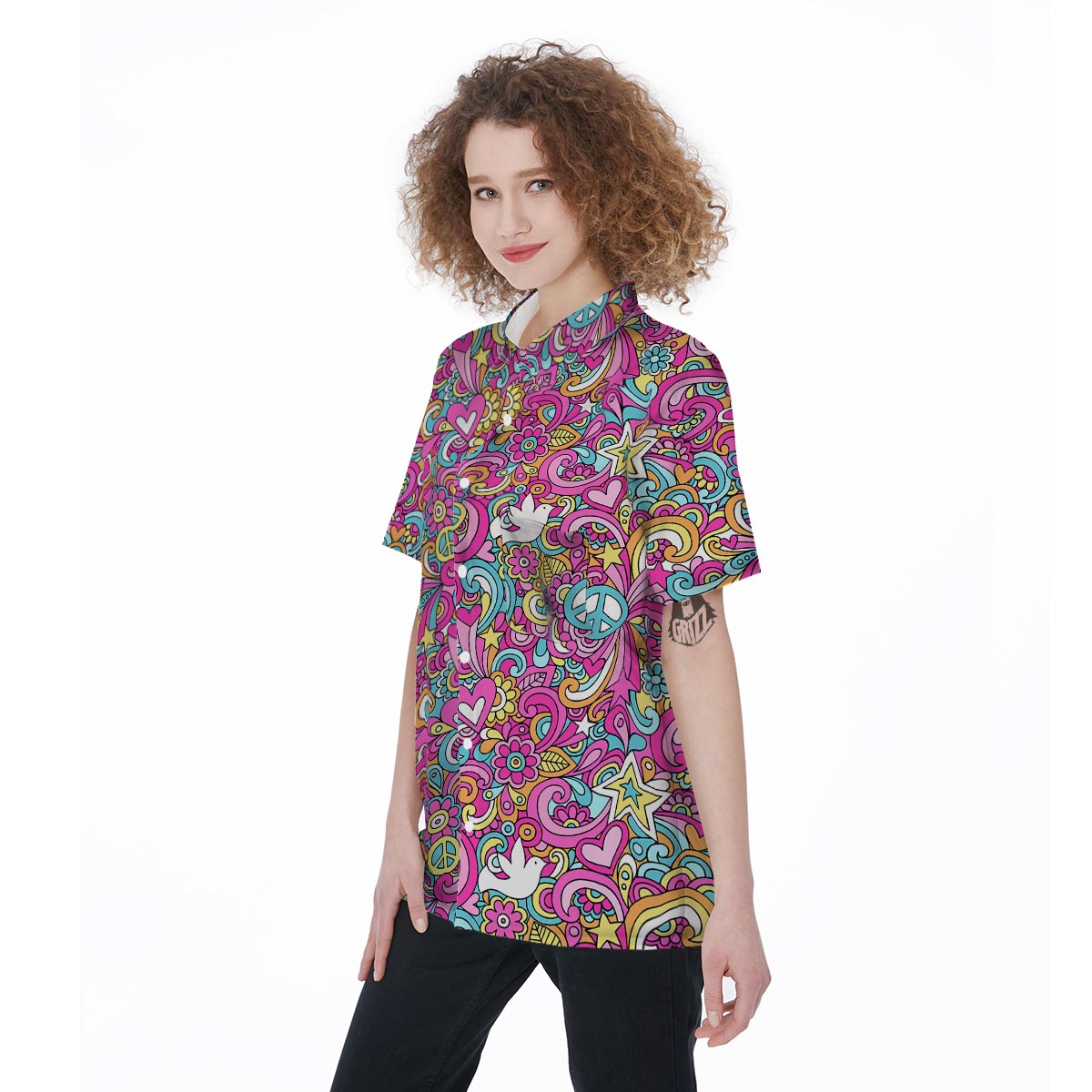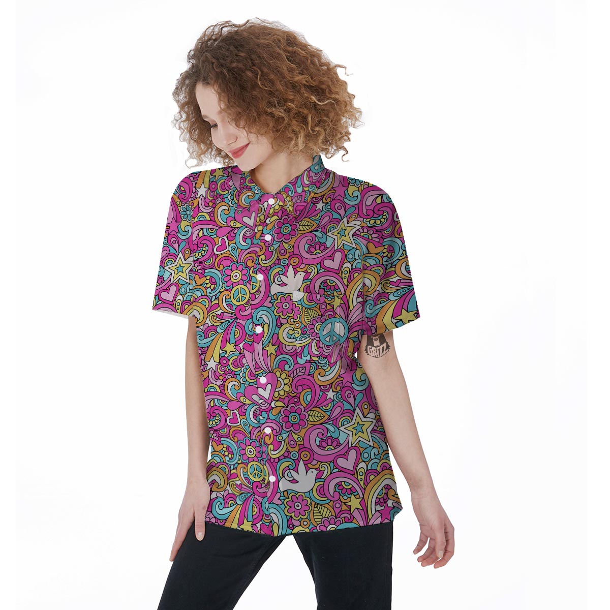 Pink Hippie Psychedelic Women's Short Sleeve Shirts