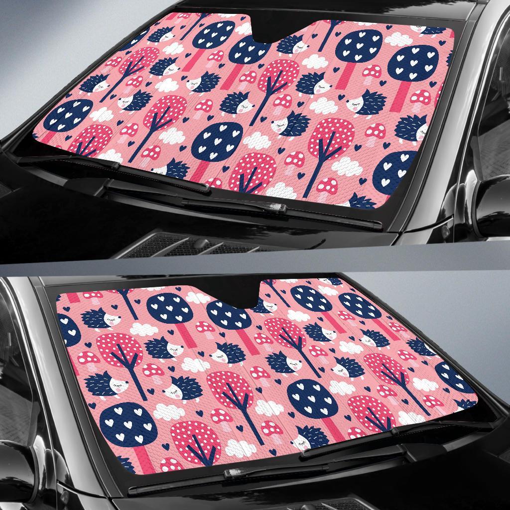 Pink Mushroom Three Hedgehogs Car Sun Shade