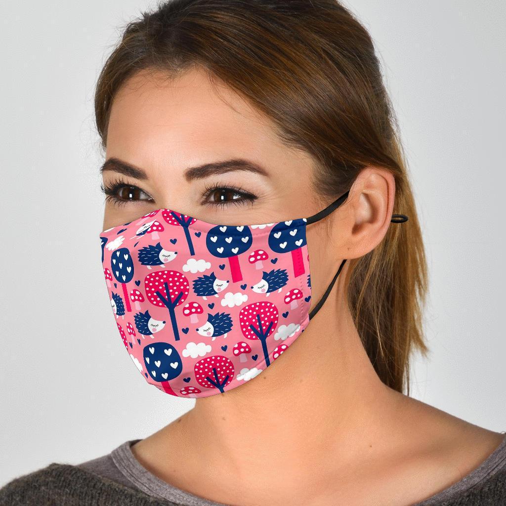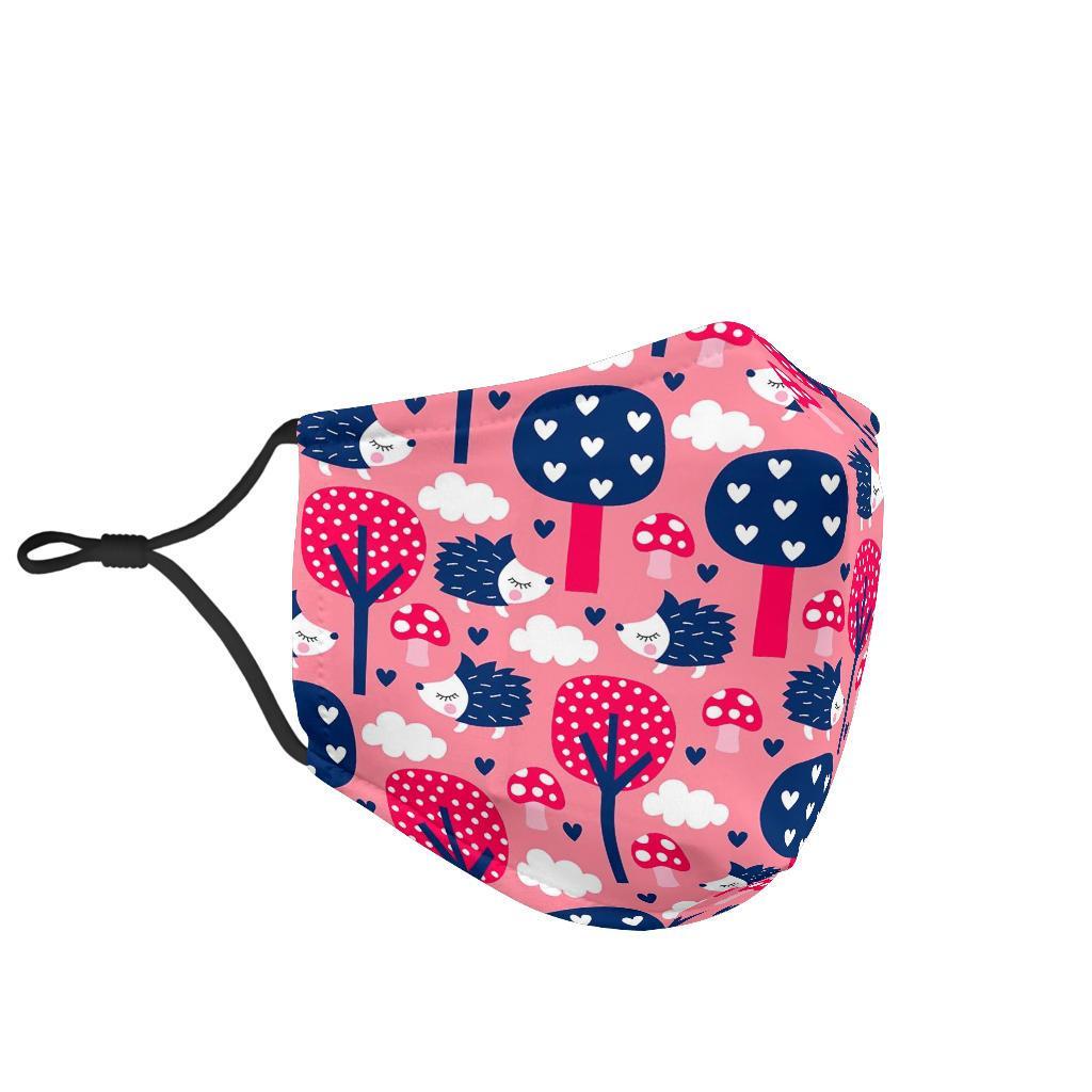 Pink Mushroom Three Hedgehogs Face Mask