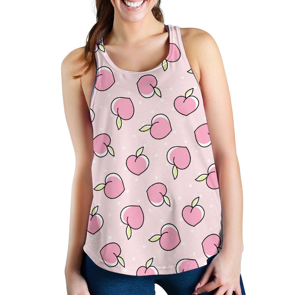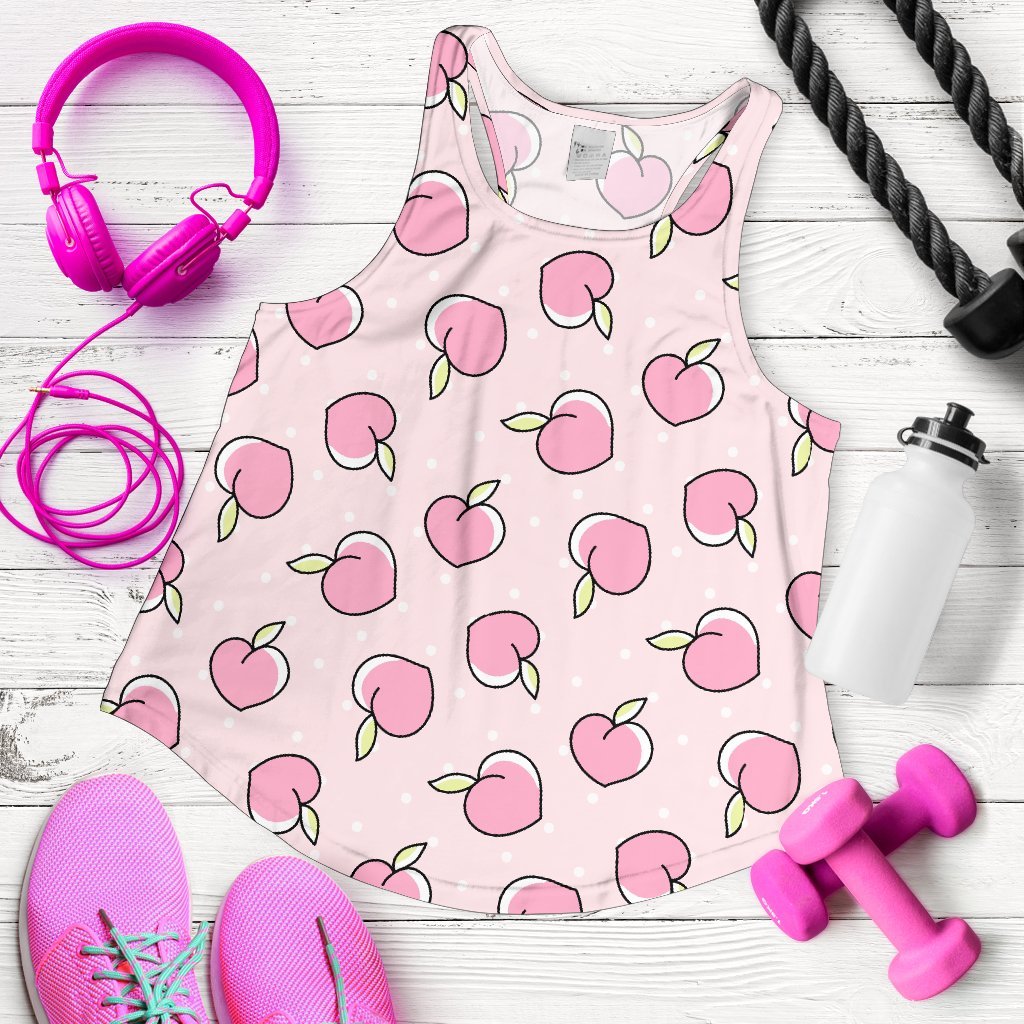 Pink Peach Pattern Print Women's Racerback Tank Tops