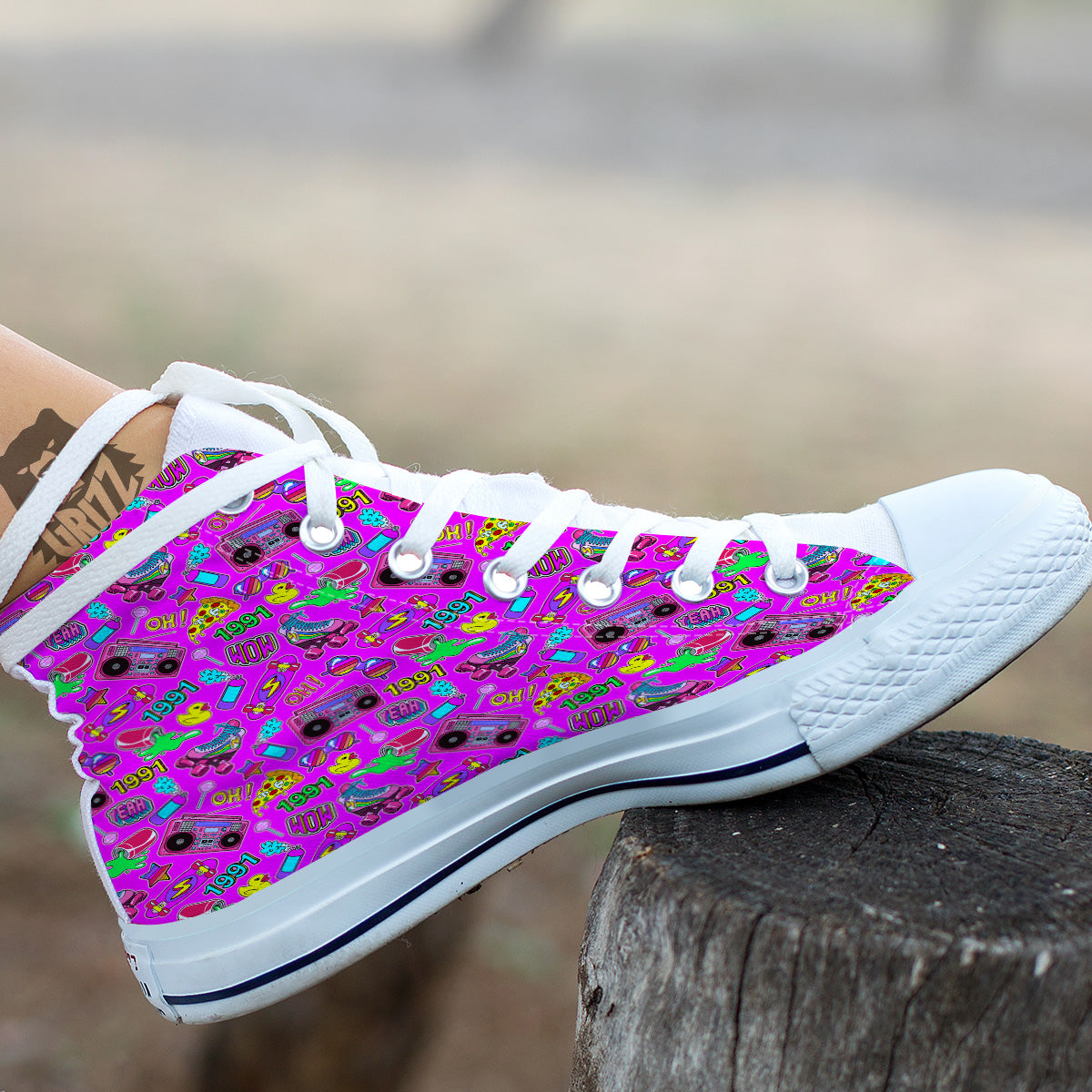Pink Retro Stickers 90s Print Pattern White High Top Shoes