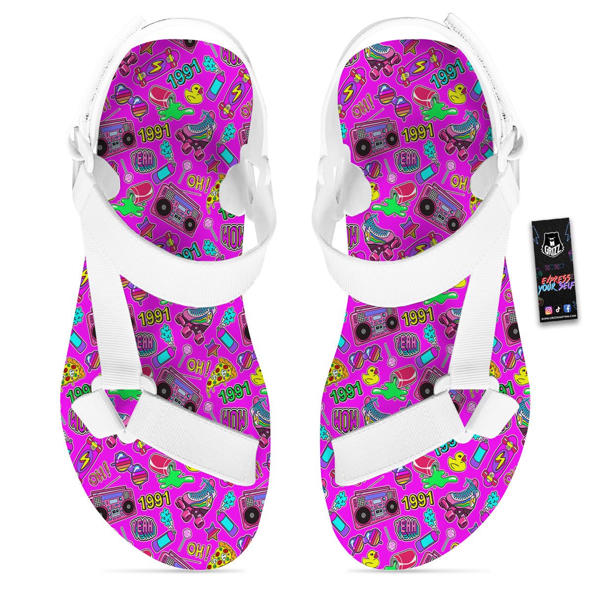 Looking for unique toe sandals? Check out our Pink Retro Stickers 90s Print Pattern White Open Toe Sandals at Grizzshopping. Our toe sandals are handcrafted to the highest quality standards that custom made for you