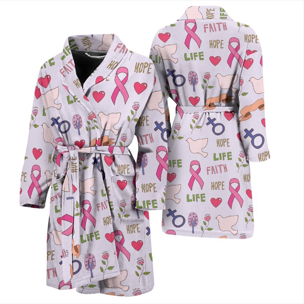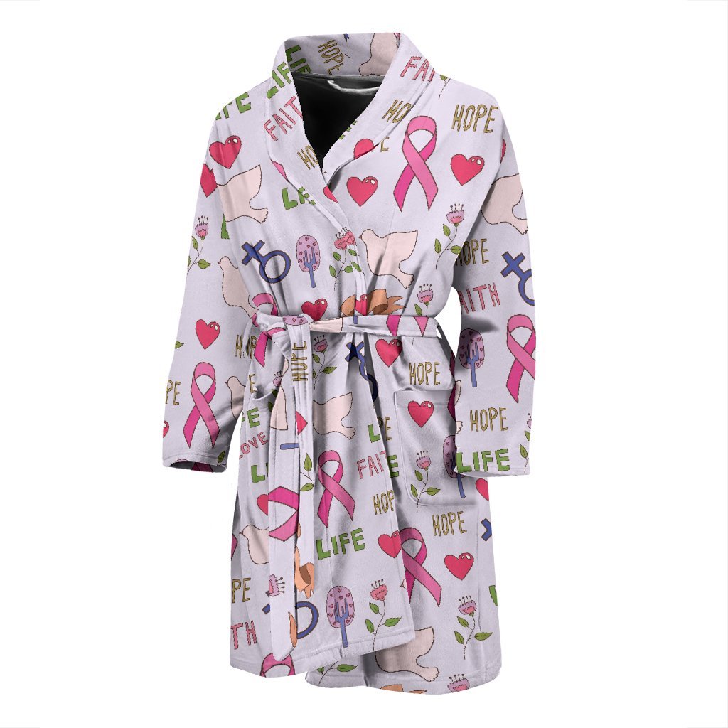 Pink Ribbon Breast Cancer Awareness Pattern Print Men Long Robe