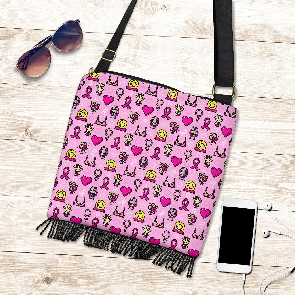 Pink Ribbon Breast Cancer Awareness Print Pattern Crossbody Bags