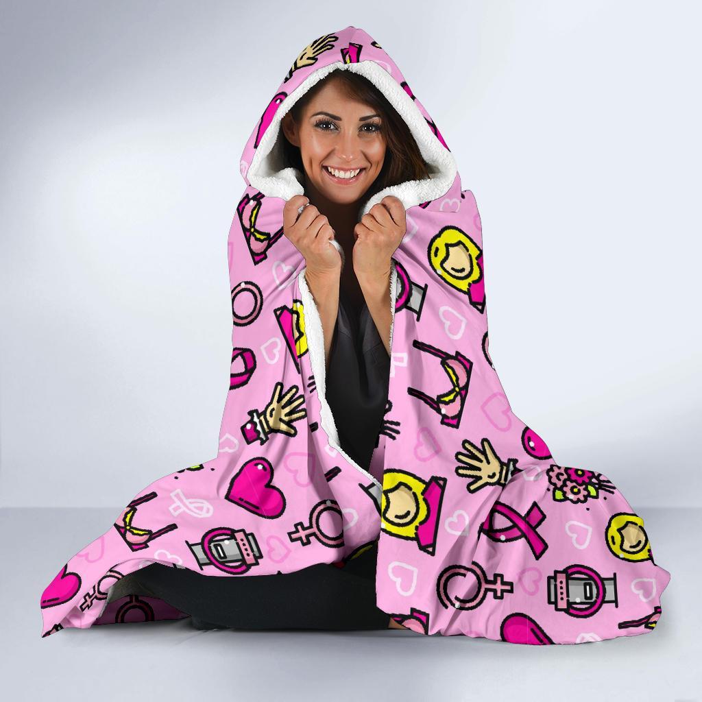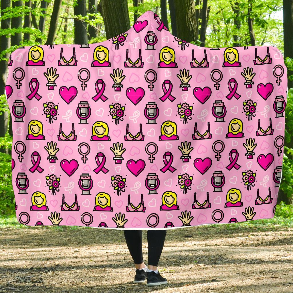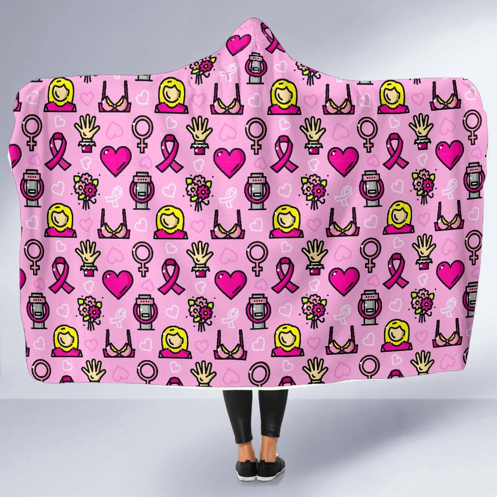 Pink Ribbon Breast Cancer Awareness Print Pattern Hooded Blanket