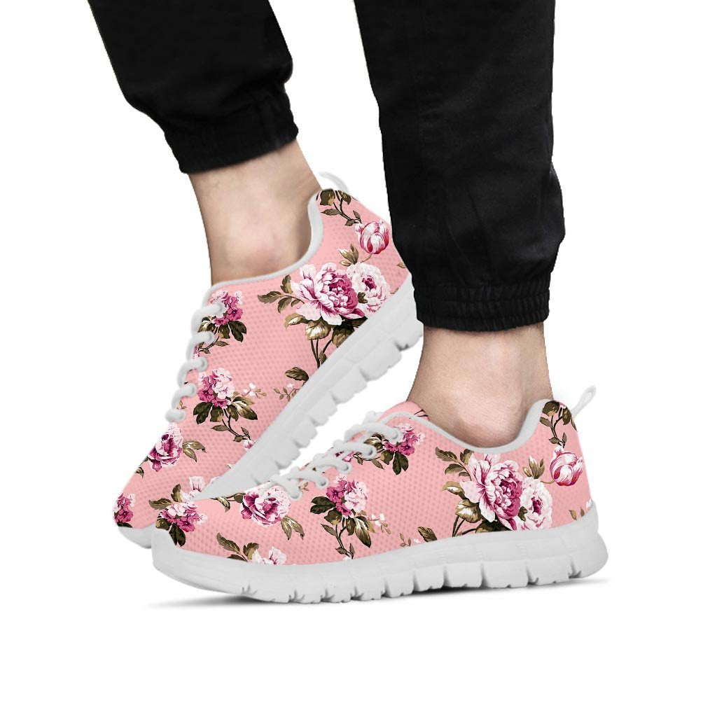 Pink Rose Floral Print Men's Sneakers