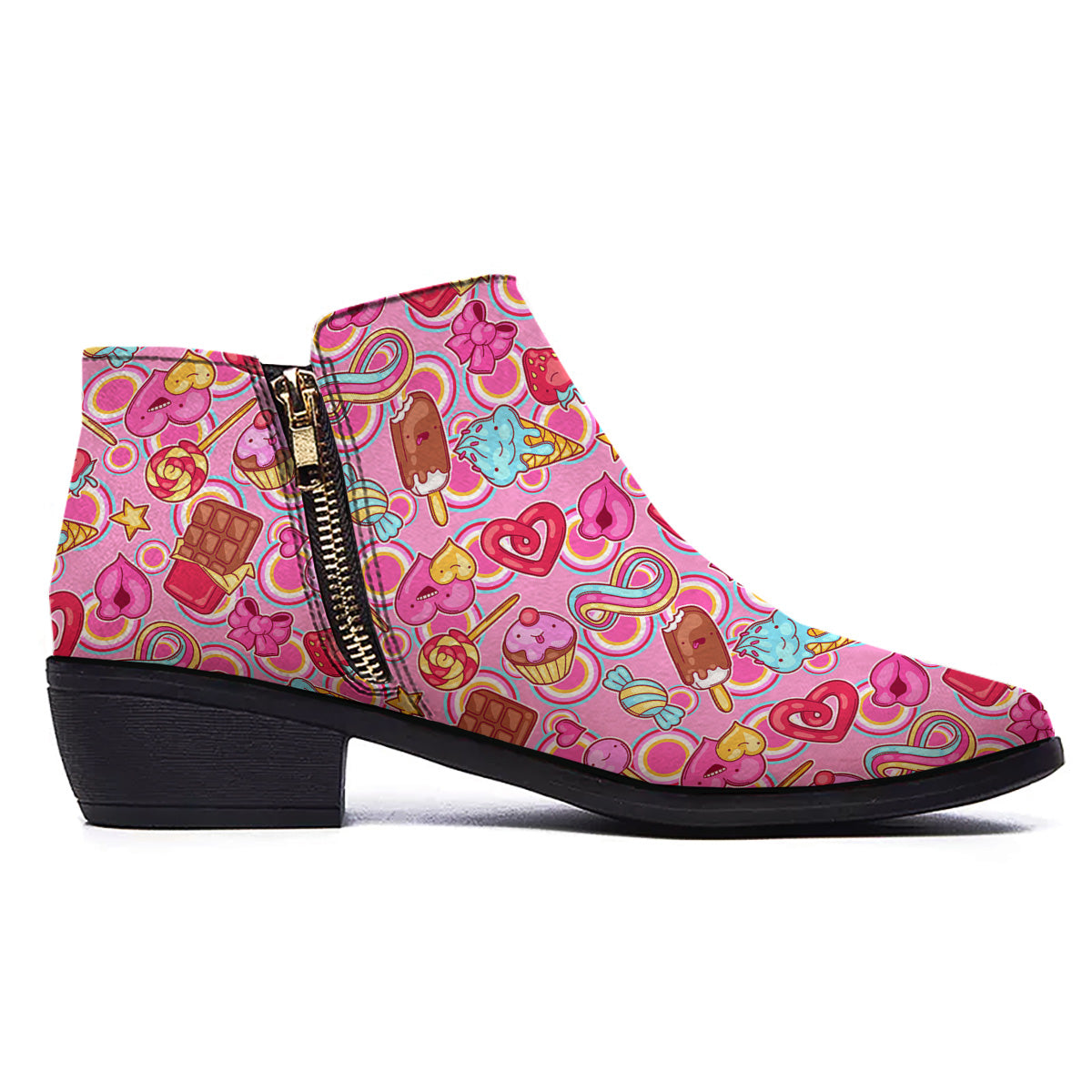 Pink Sweet Candy Print Pattern Ankle Boots
