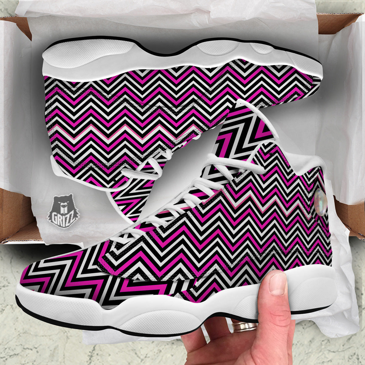 Looking for a unique basketball shoes? Check out our Pink White Black Zigzag Print Pattern White Basketball Shoes at Grizzshopping. Our basketball shoes are handcrafted to the highest quality standards that custom made for you