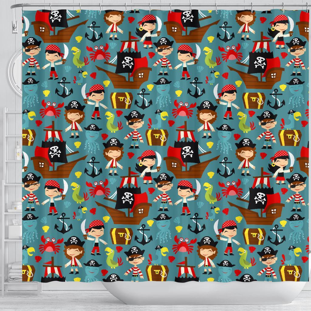 Pirate Pattern Print Bathroom Shower Curtain