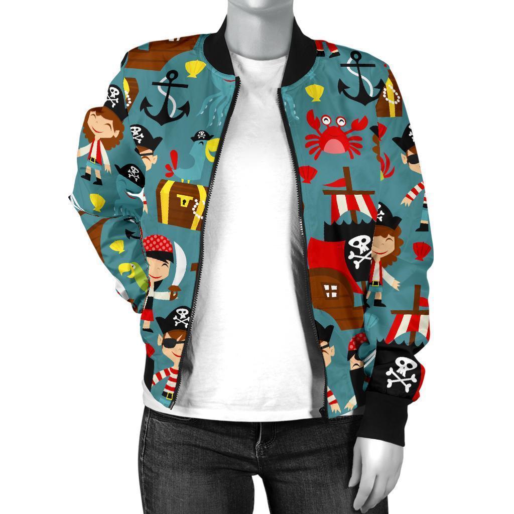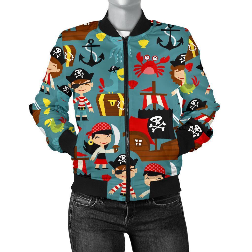 Pirate Pattern Print Women Casual Bomber Jacket