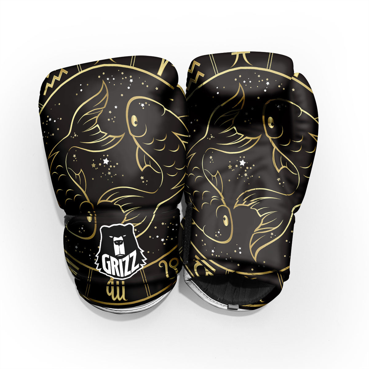 Pisces Sign Black And Gold Print Sparring Gloves