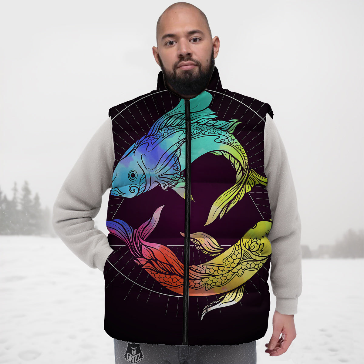 Looking for a unique Down Vest? Check out our Pisces Sign Colorful Print Down Vest at Grizzshopping. Our down vest are handcrafted to the highest quality standards that custom made for you