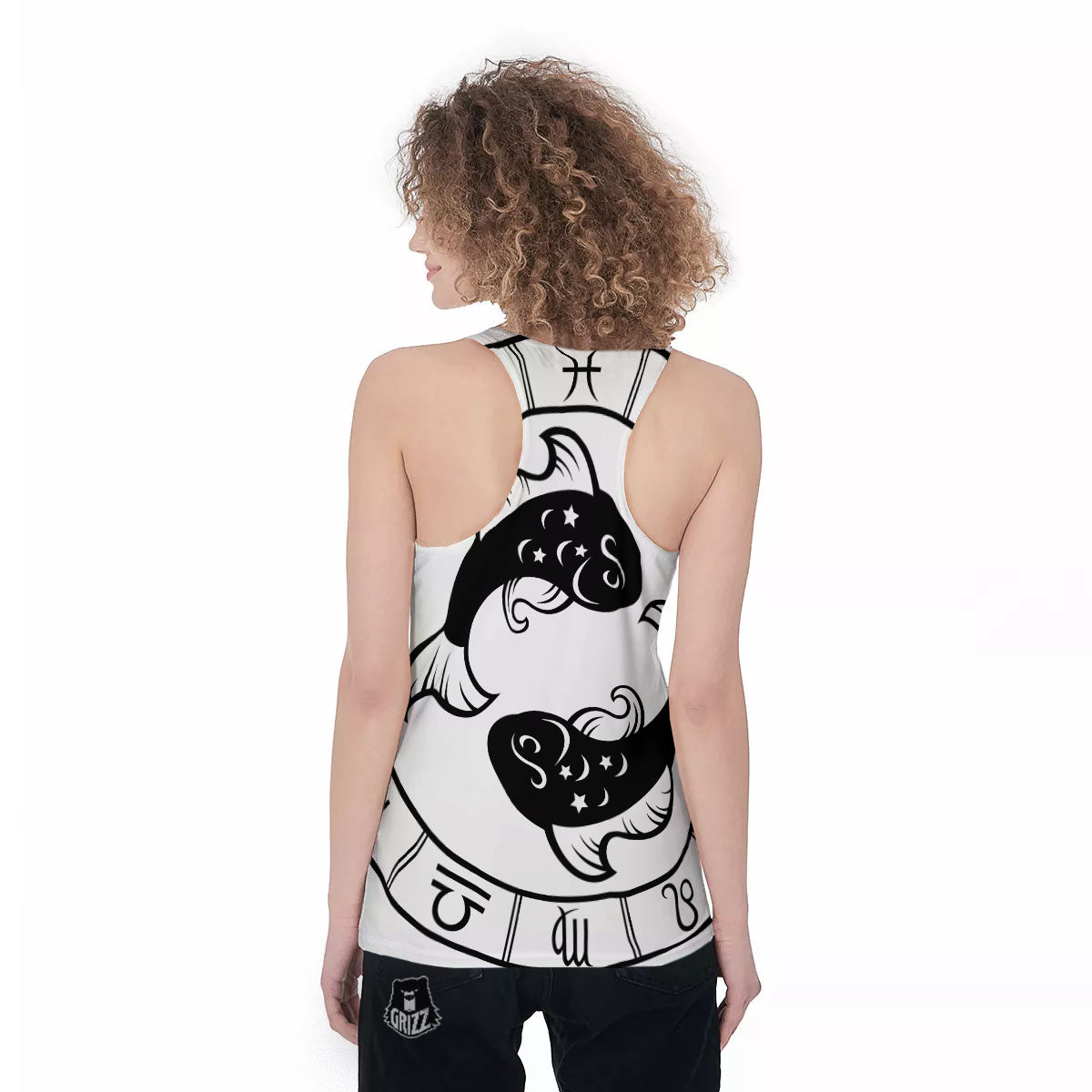 Pisces Sign White And Black Print Women's Racerback Tank Top