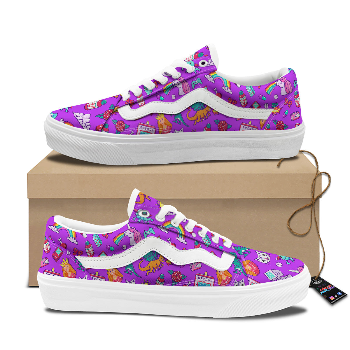 Pixel Art 8 Bit Pink Print Pattern Skate Shoes