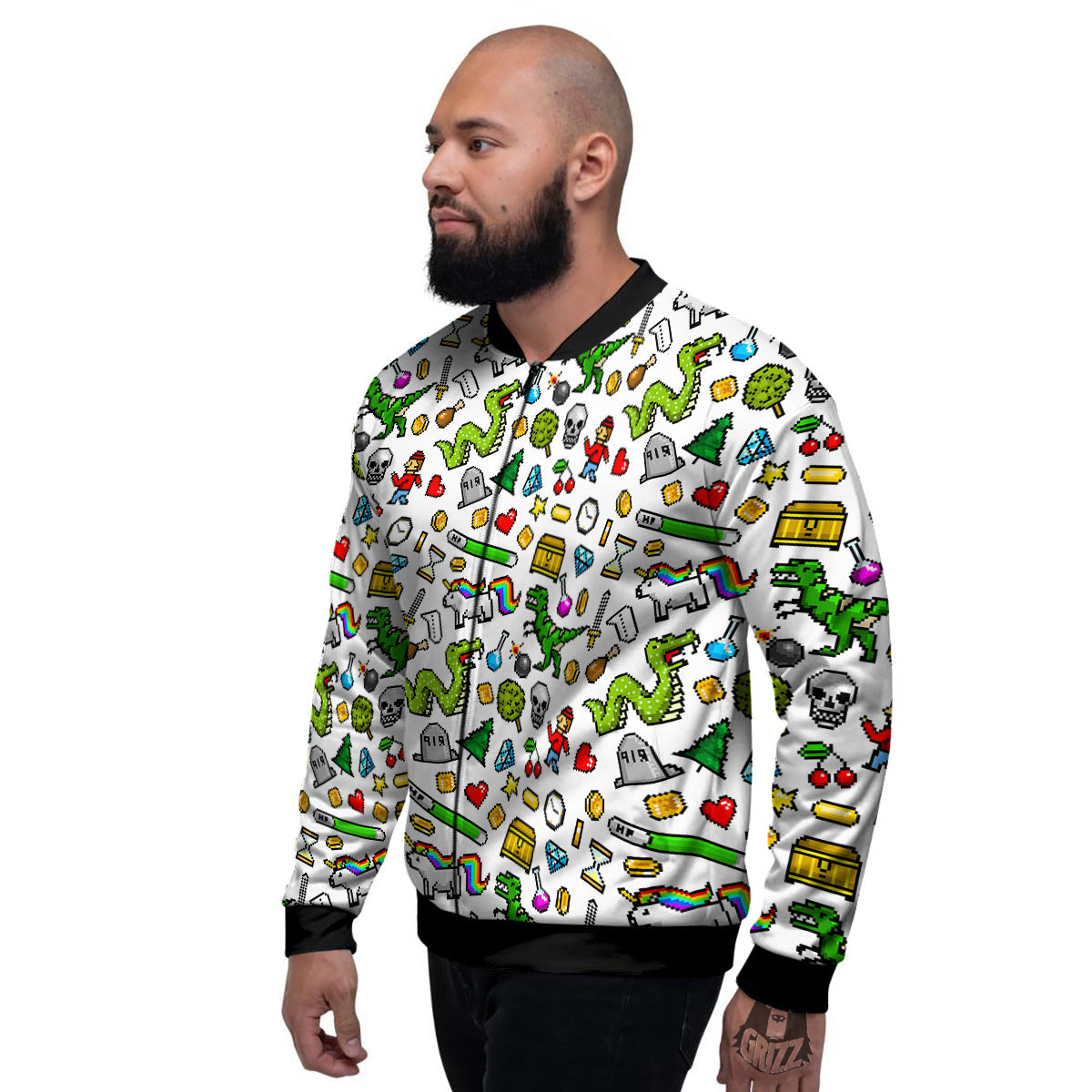 Pixel Art 8 Bit Retro Cartoon Print Pattern Men's Bomber Jacket
