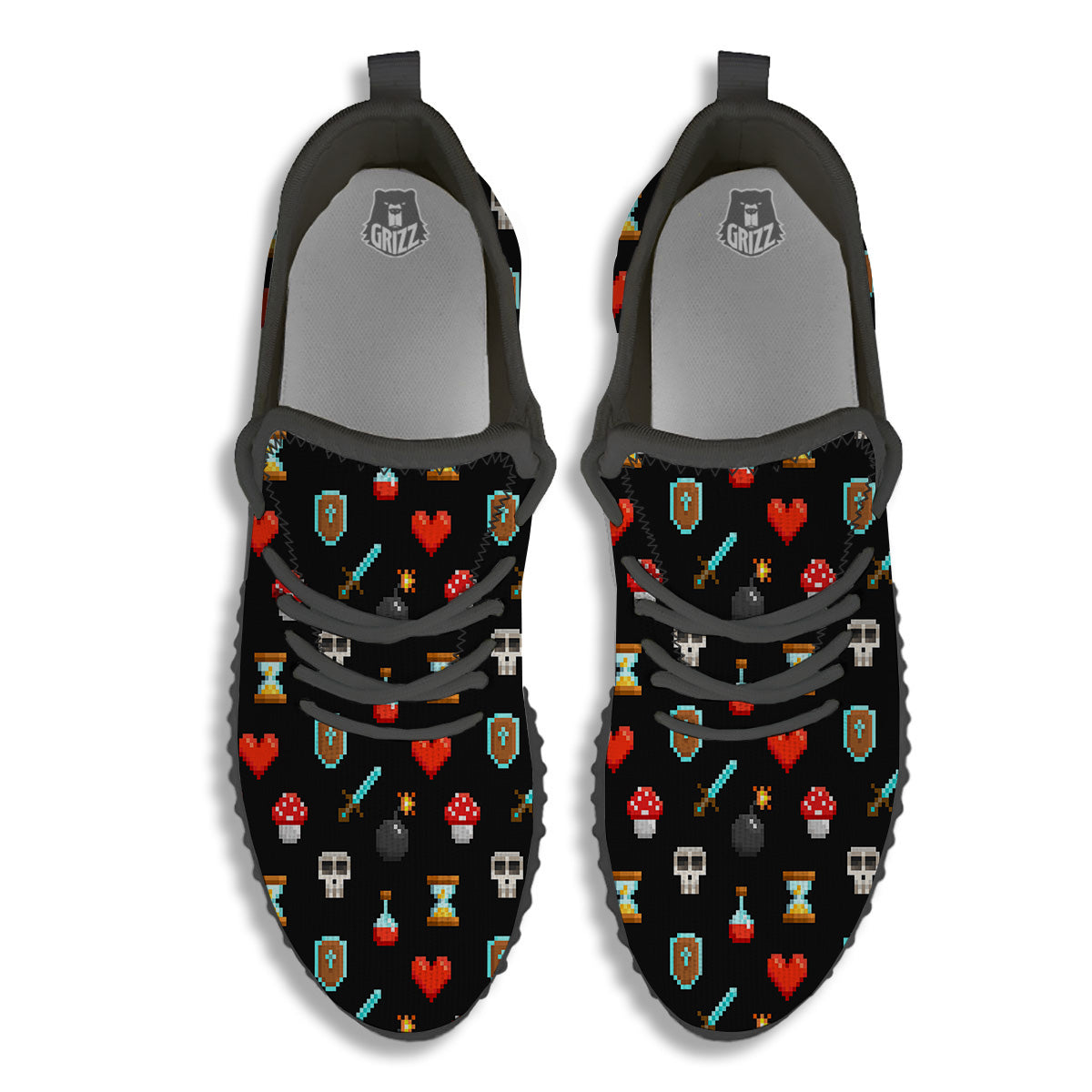 Pixel Graphics Game Icons Print Pattern Black Walking Shoes