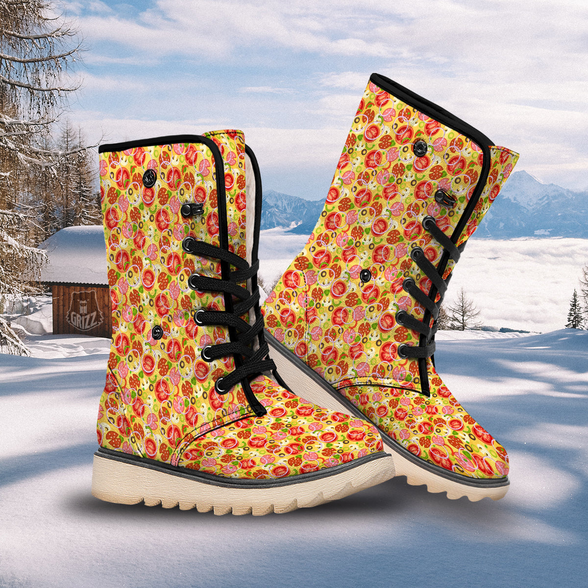 Pizza And Different Ingredients Print Pattern Snow Boots
