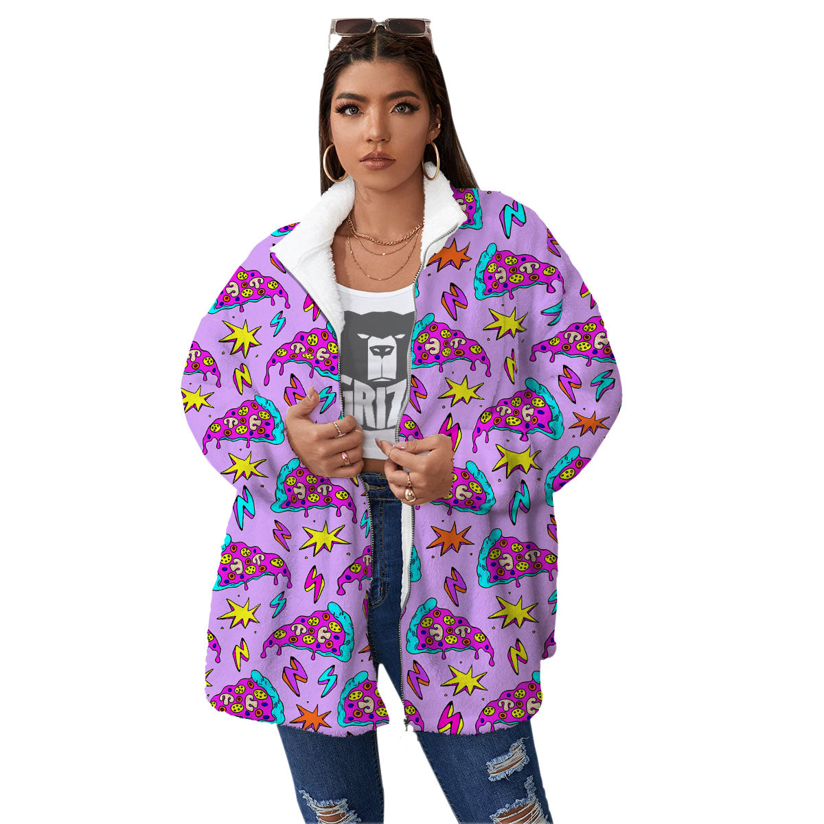 Pizza Psychedelic Print Pattern Women's Sherpa Jacket