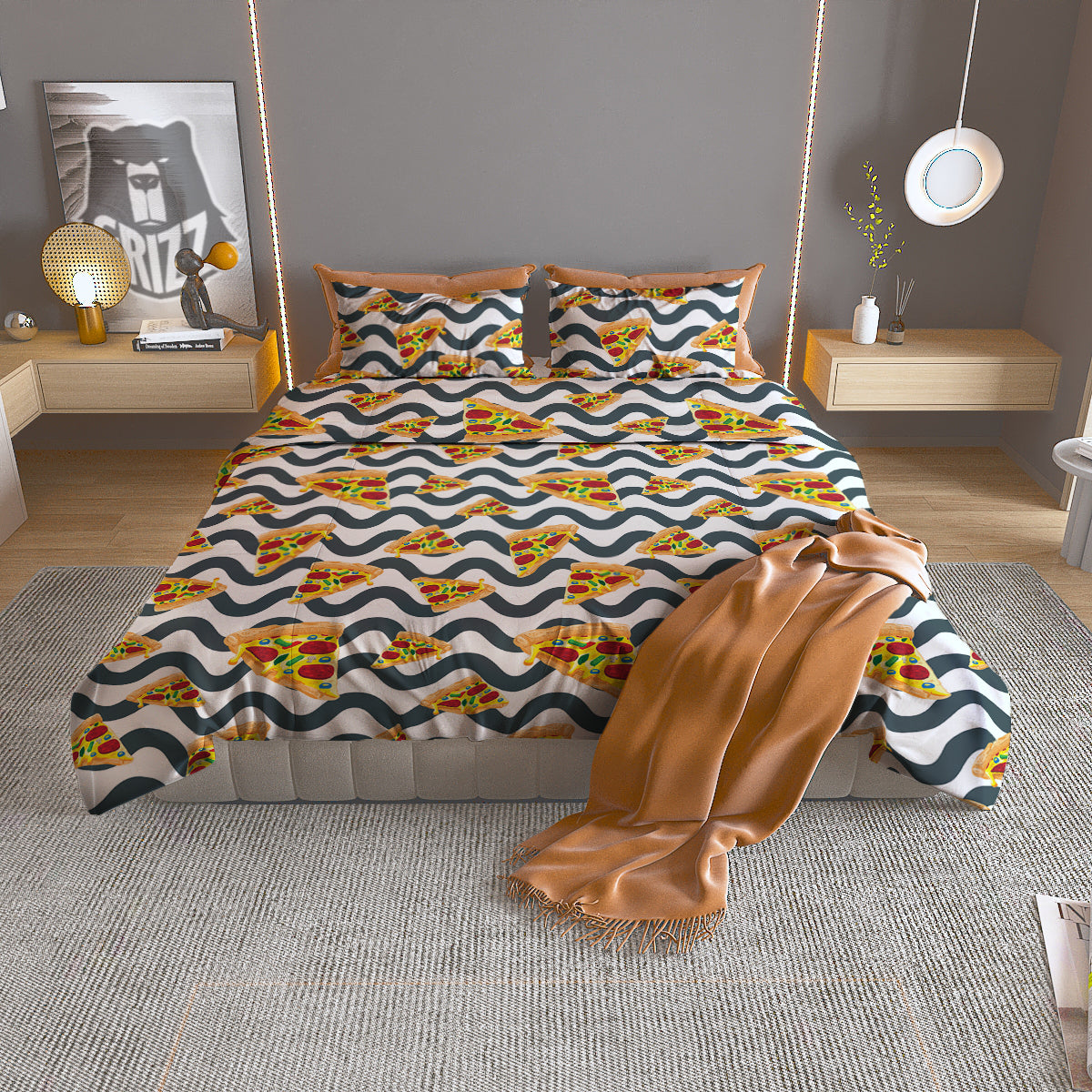 Pizza Zigzag Print Pattern Duvet Cover Bedding Set