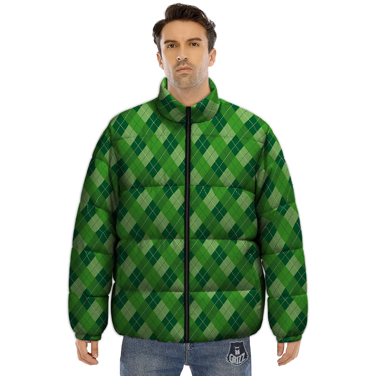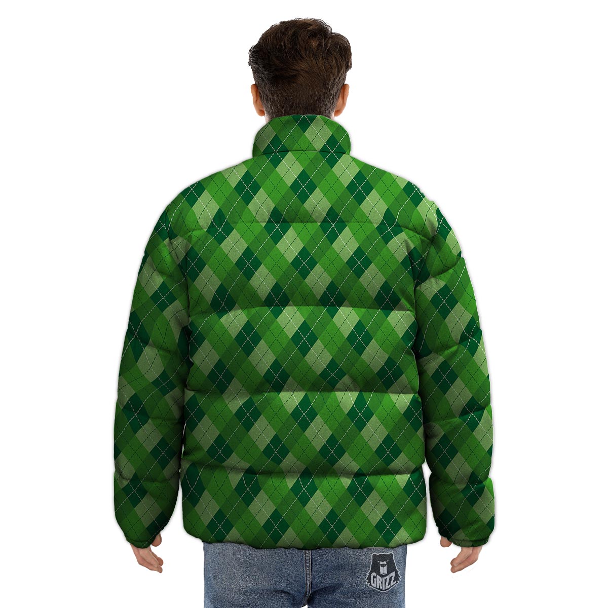Plaid St. Patrick's Day Print Pattern Puffer Jacket