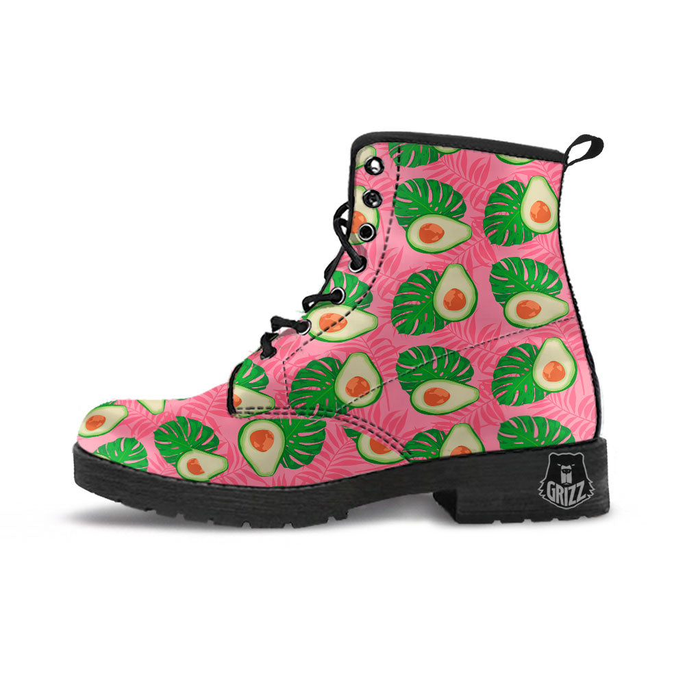Plam Leaf And Avocado Pink Print Pattern Leather Boots