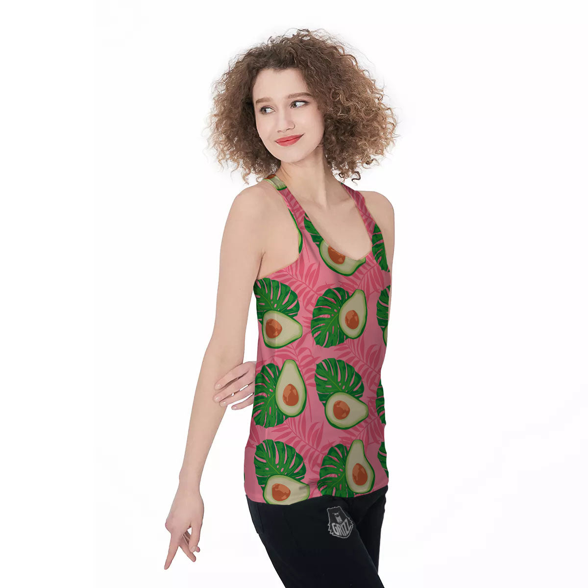 Plam Leaf And Avocado Pink Print Pattern Women's Racerback Tank Top