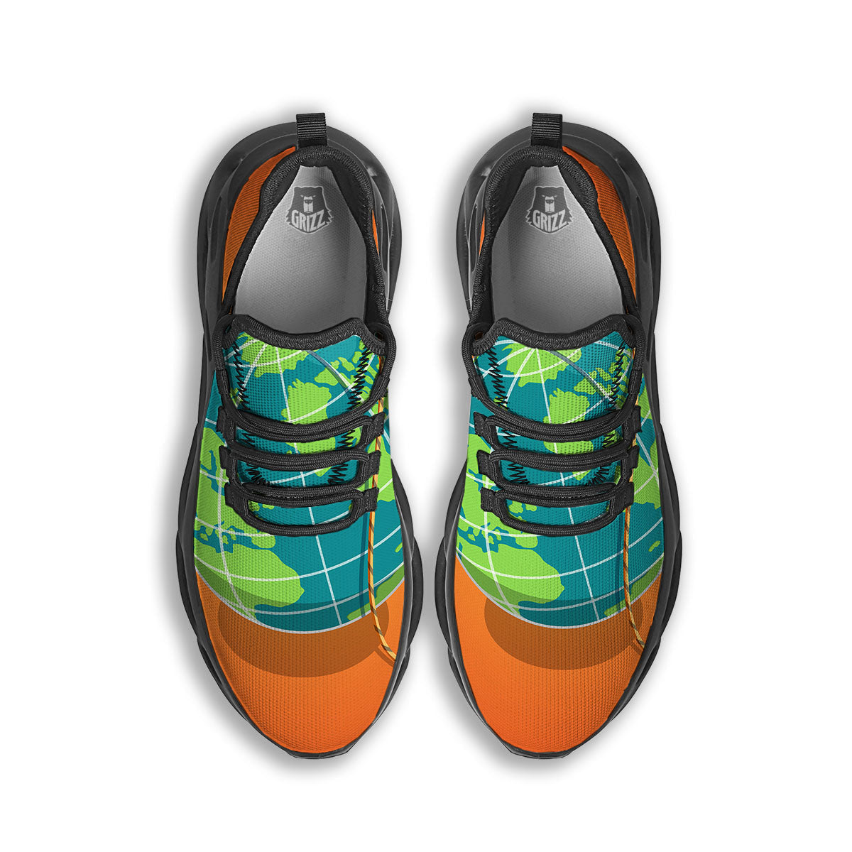 Planet Earth With Burning Fuse Orange Print Black Running Shoes