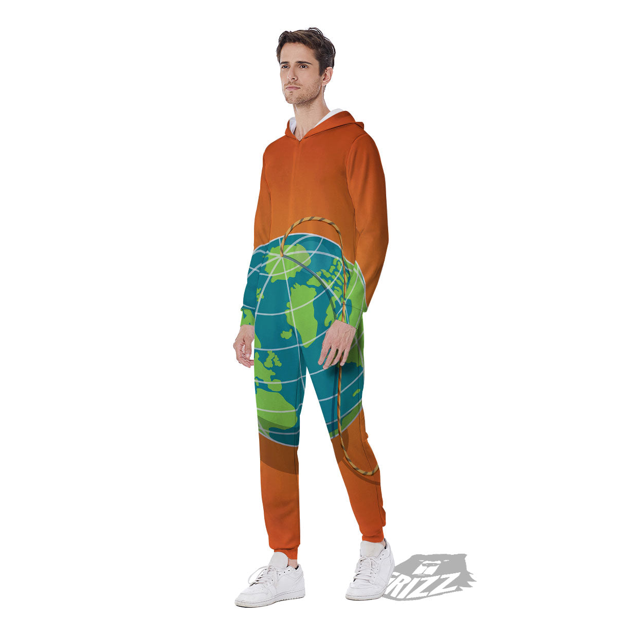 Planet Earth With Burning Fuse Orange Print Men's Jumpsuit