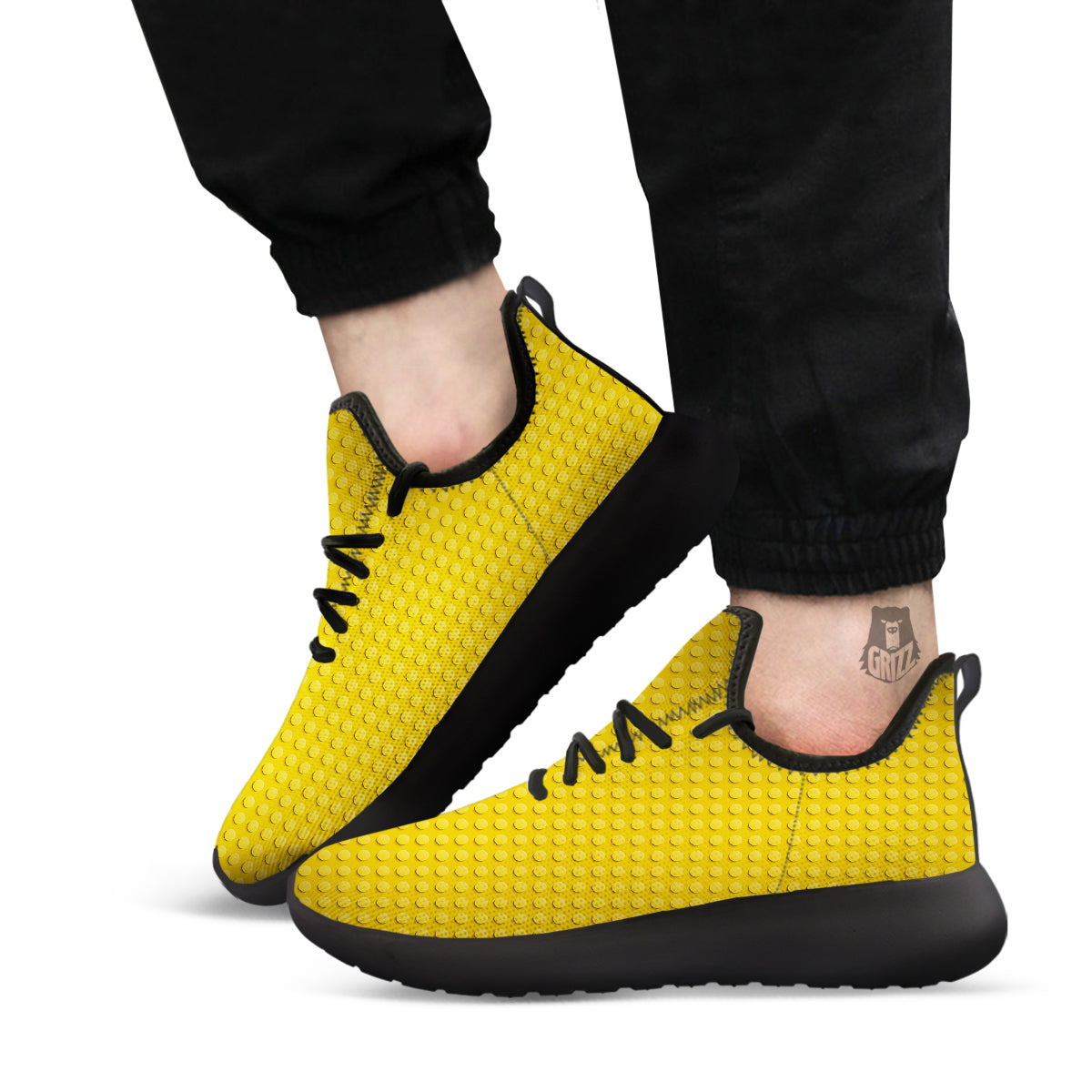 Plastic Building Blocks Yellow Print Pattern Black Athletic Shoes