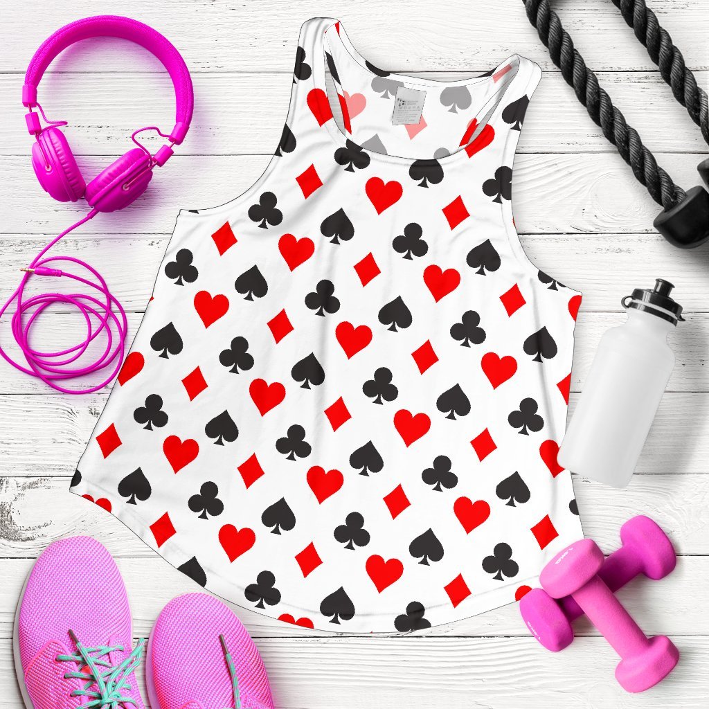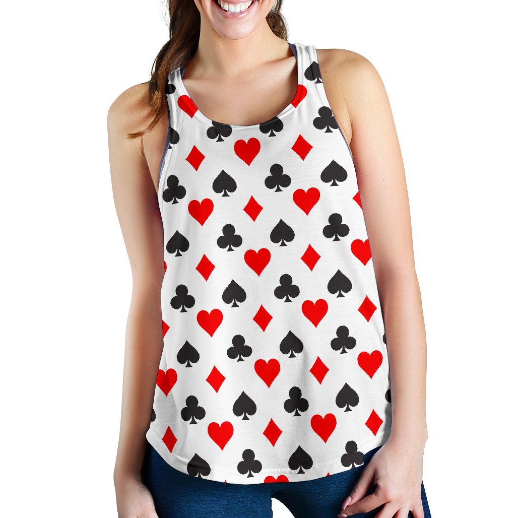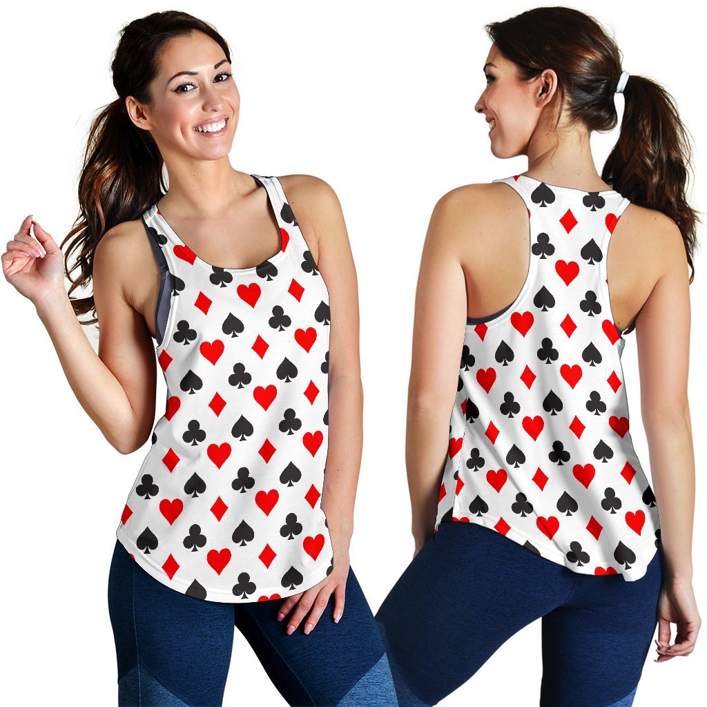 Playing Card Poker Casino Pattern Print Women's Racerback Tank Tops